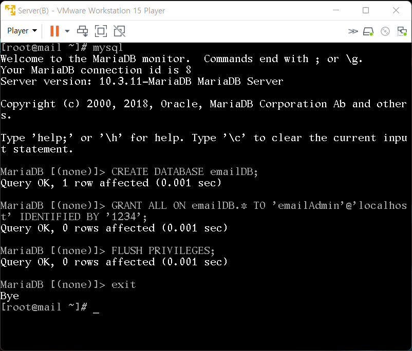 5. 데이터 베이스 설정(emailAdmin@localhost / 1234)