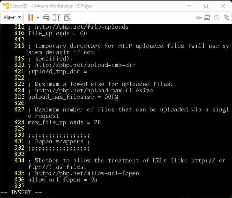 7. /etc/php.ini 수정(대용량 업로드 수정)