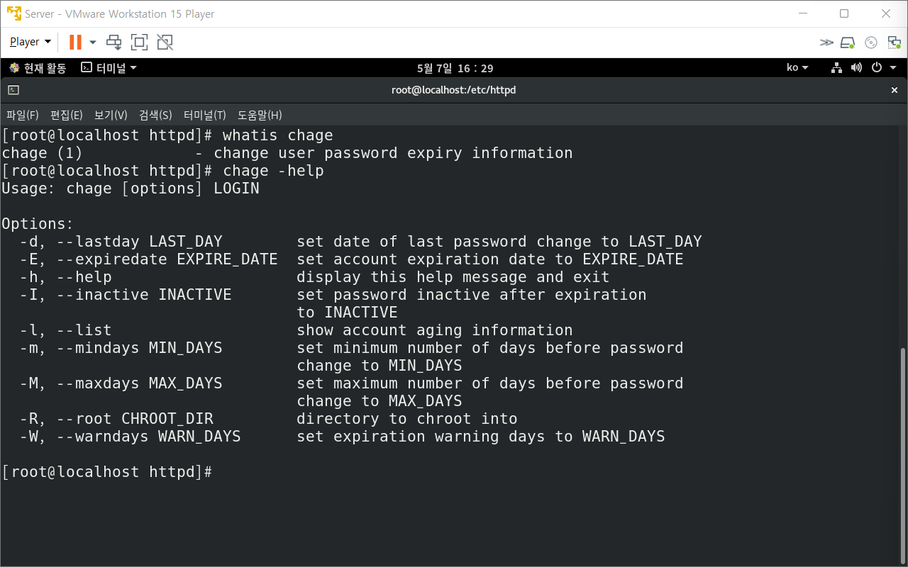 - -d [마지막 날짜] : 패스워드의 마지막 변경 날짜를 YYYY-MM-DD 형태로 나타낸다.
