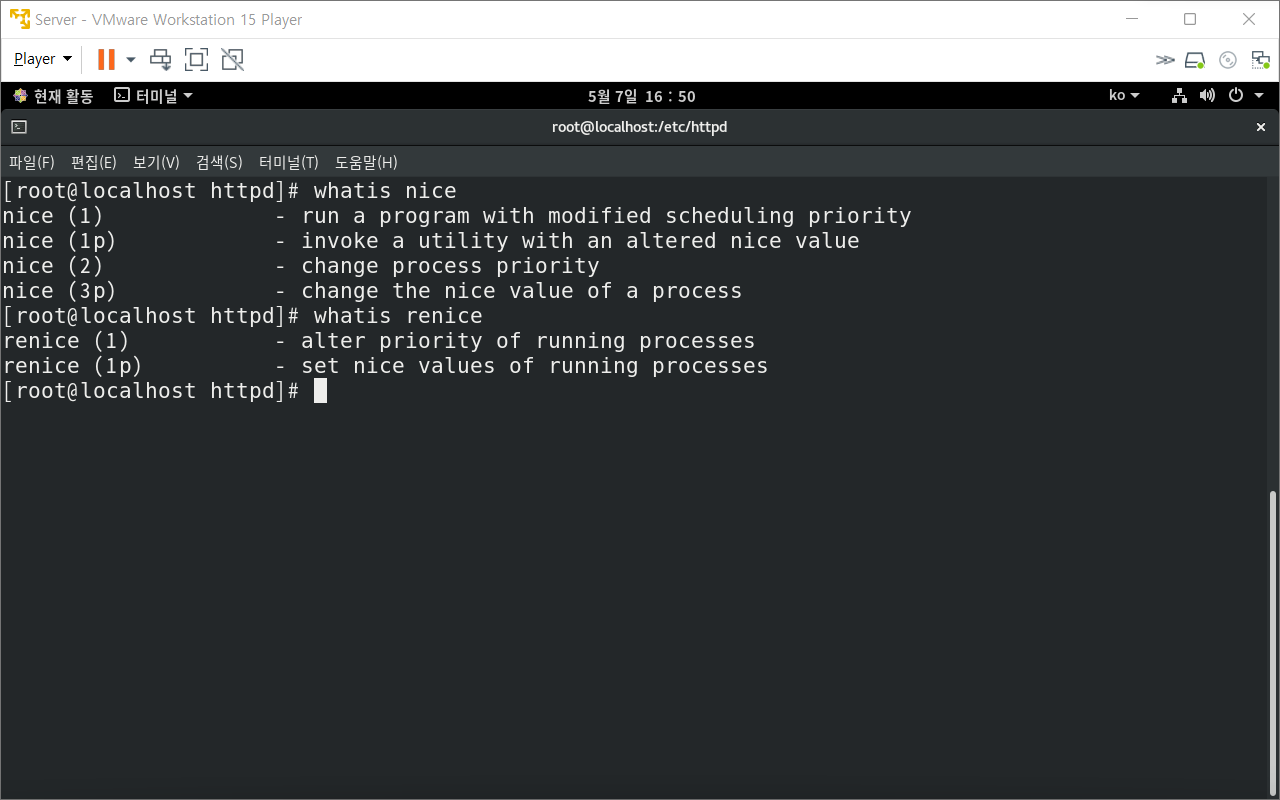 - nice : 프로세스의 스케줄링 우선순위를 변경 / nice [옵션] [명령어[인수] ···]