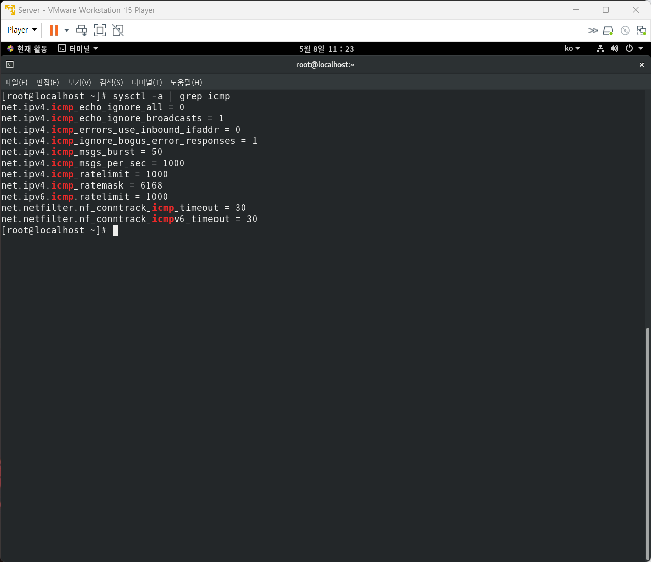 가. ping 명령어에 응답하지 않도록 커널 매개 변수를 변경한다.
