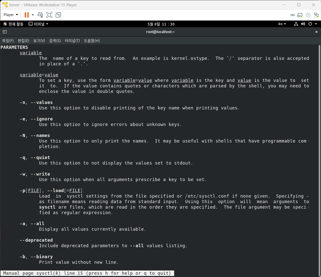 9. 다음은 시스템 보안 강화를 위해 커널 매개 변수(parameter)를 제어하는 과정이다.