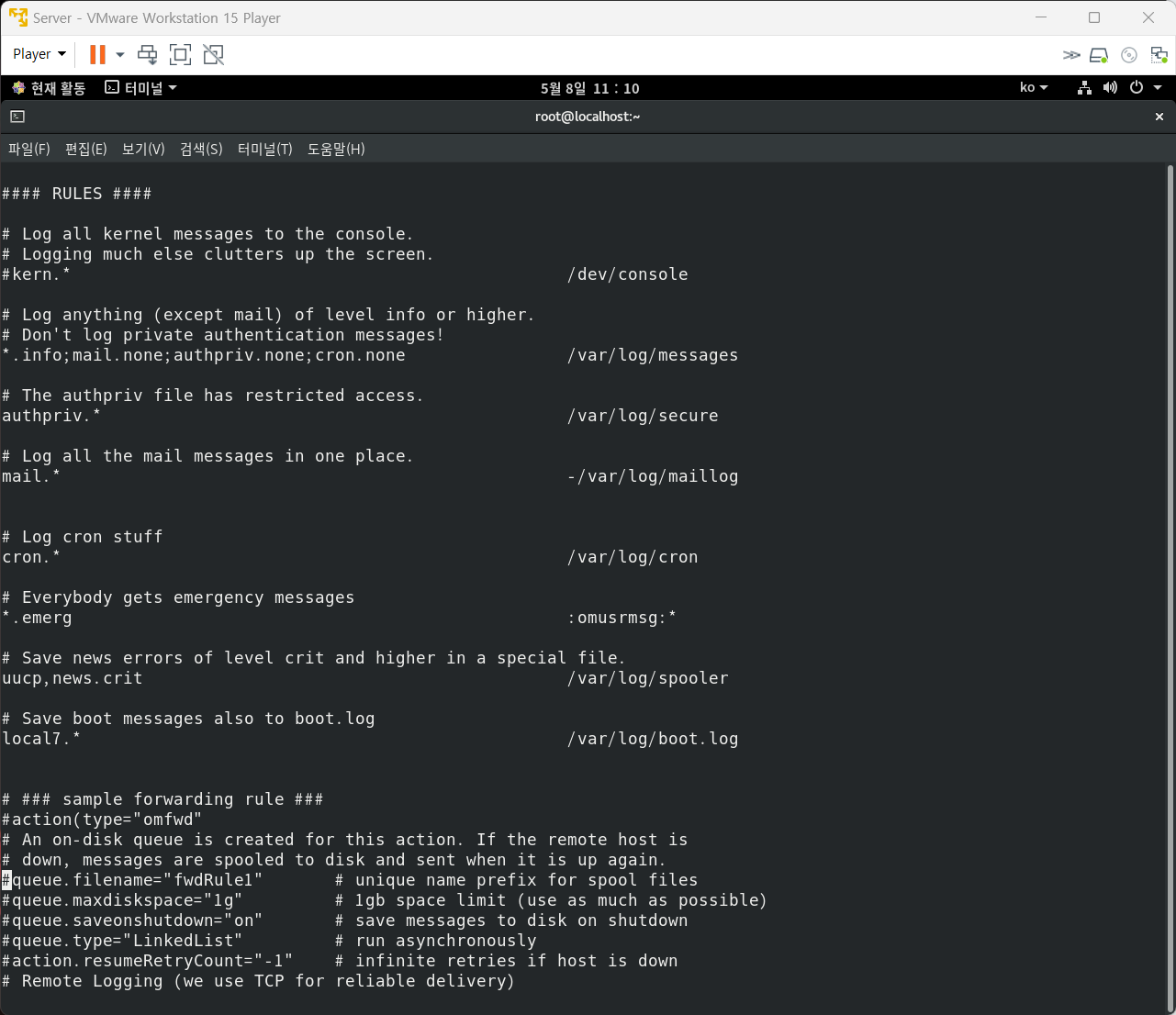 - rsyslog.conf : rsyslogd 데몬 프로세스 구성 파일