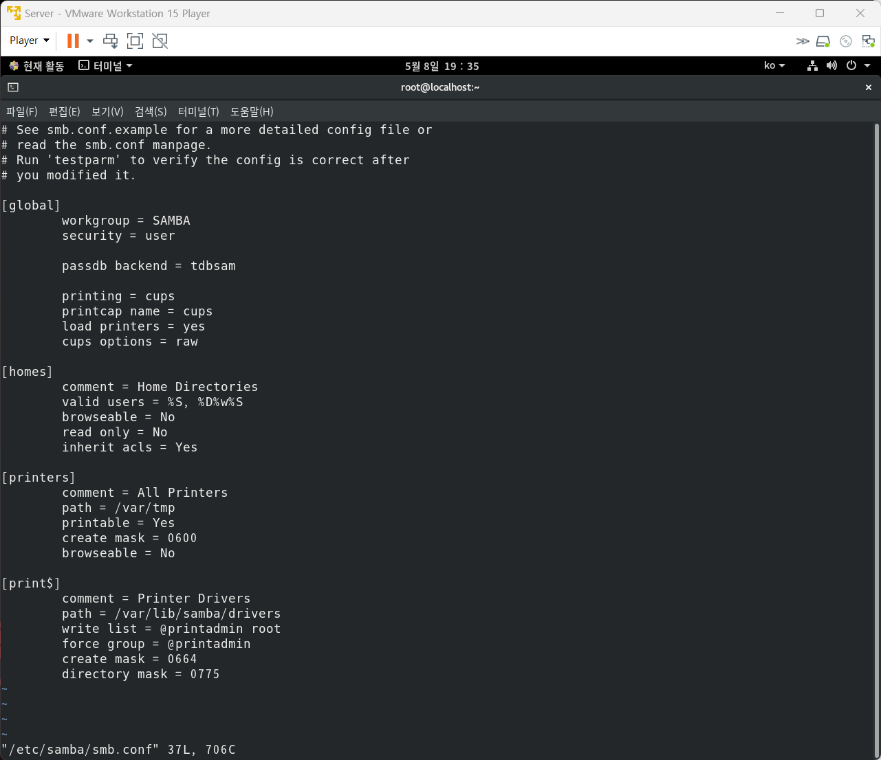 - /etc/samba/smb.conf : SMB 서버 환경 설정 파일