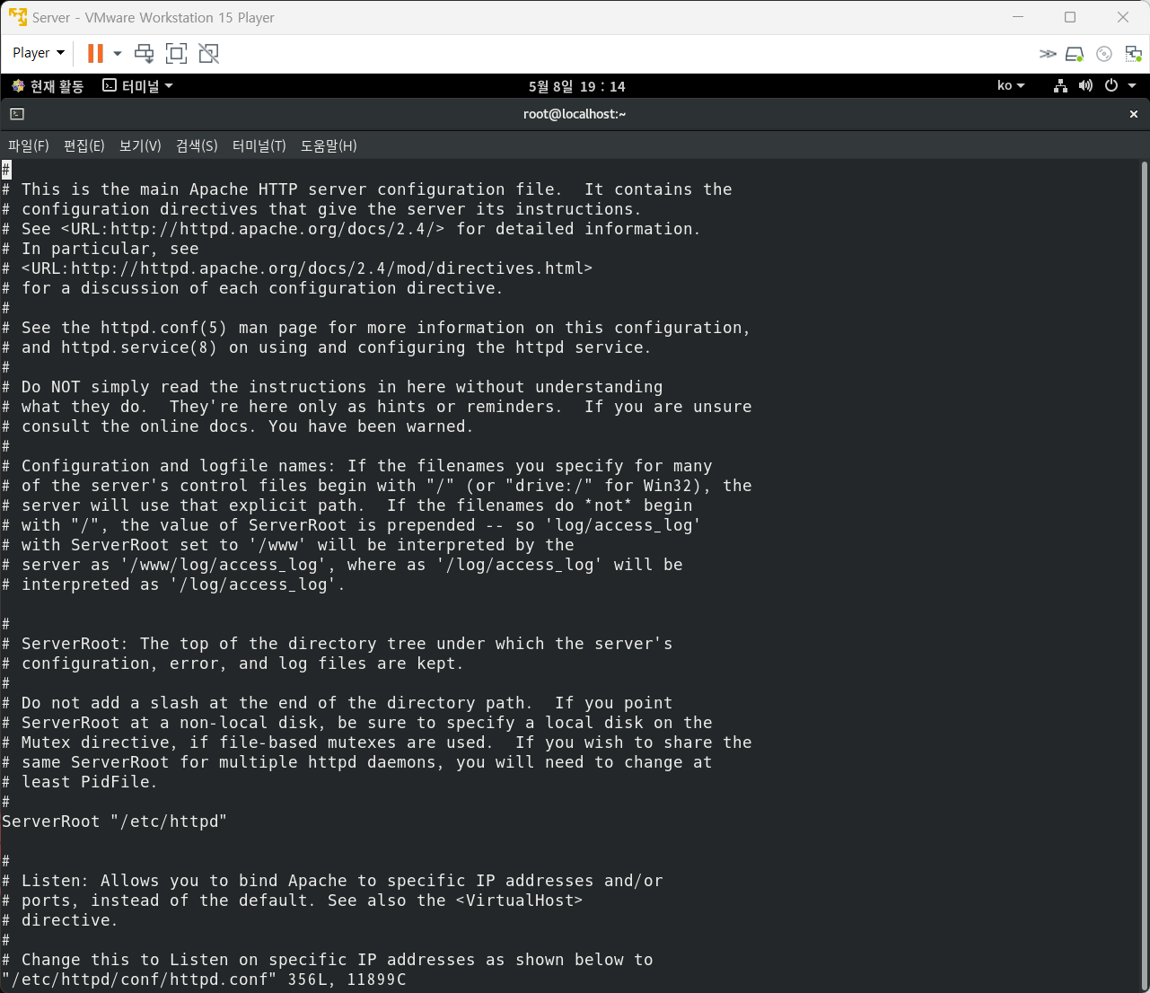 - /etc/httpd/conf/httpd.conf : 아파치 웹서버 주 설정 파일