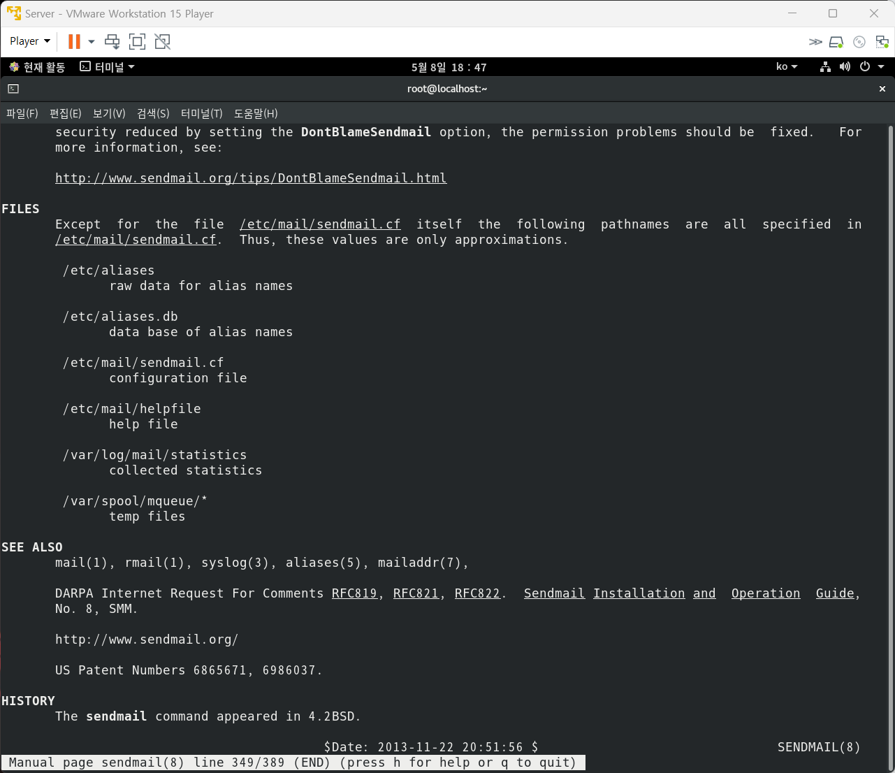 - /etc/aliases : 특정 계정으로 들어오는 메일을 다른 계정으로 전송되도록 설정한다. / 특정 ID 로 들어오는 메일을 여러 호스트에게 전달할 때 사용하는 파일
