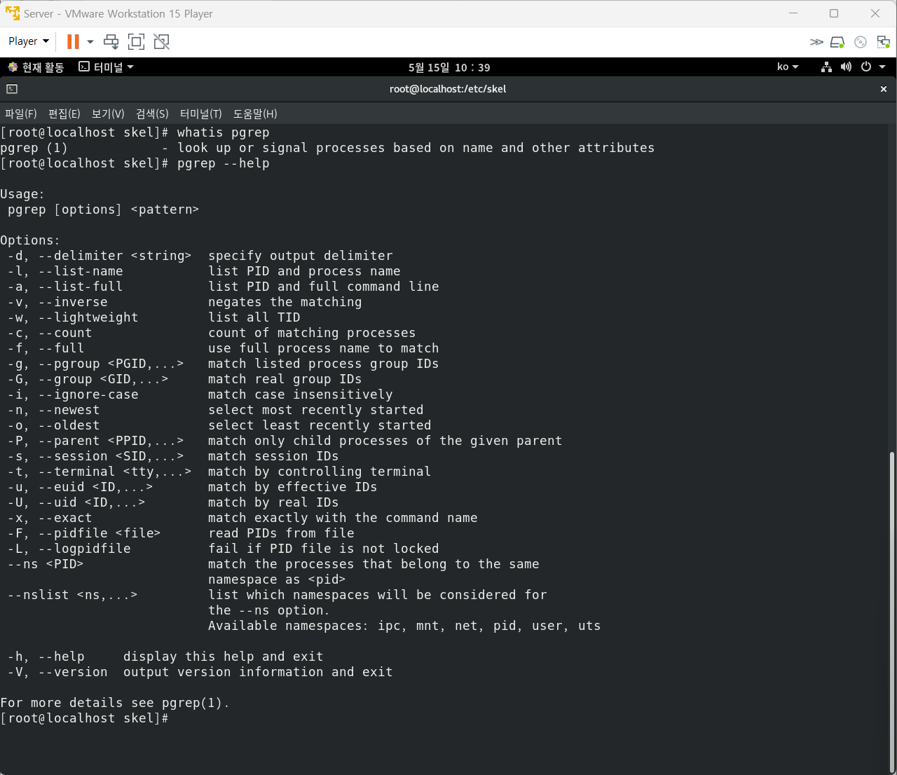 pgrep : ps(프로세스 정보 출력) + grep(원하는 정보 추출)