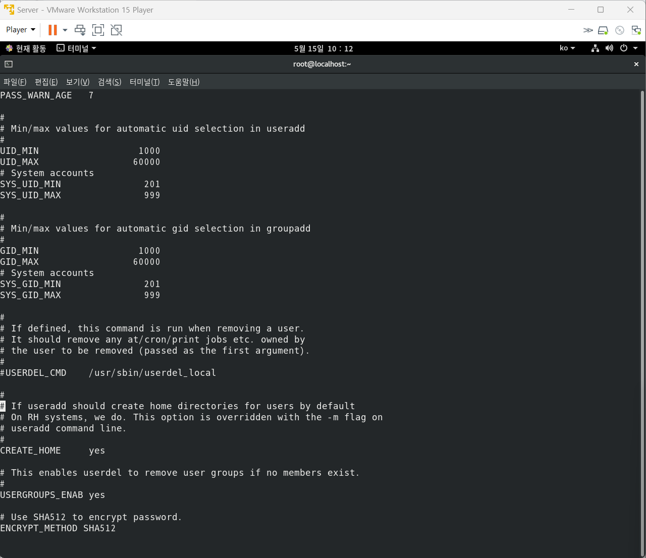 /etc/login.defs : 사용자 계정에 관란 설정(패스워드 길이 제한, 패스워드 사용 기한)
