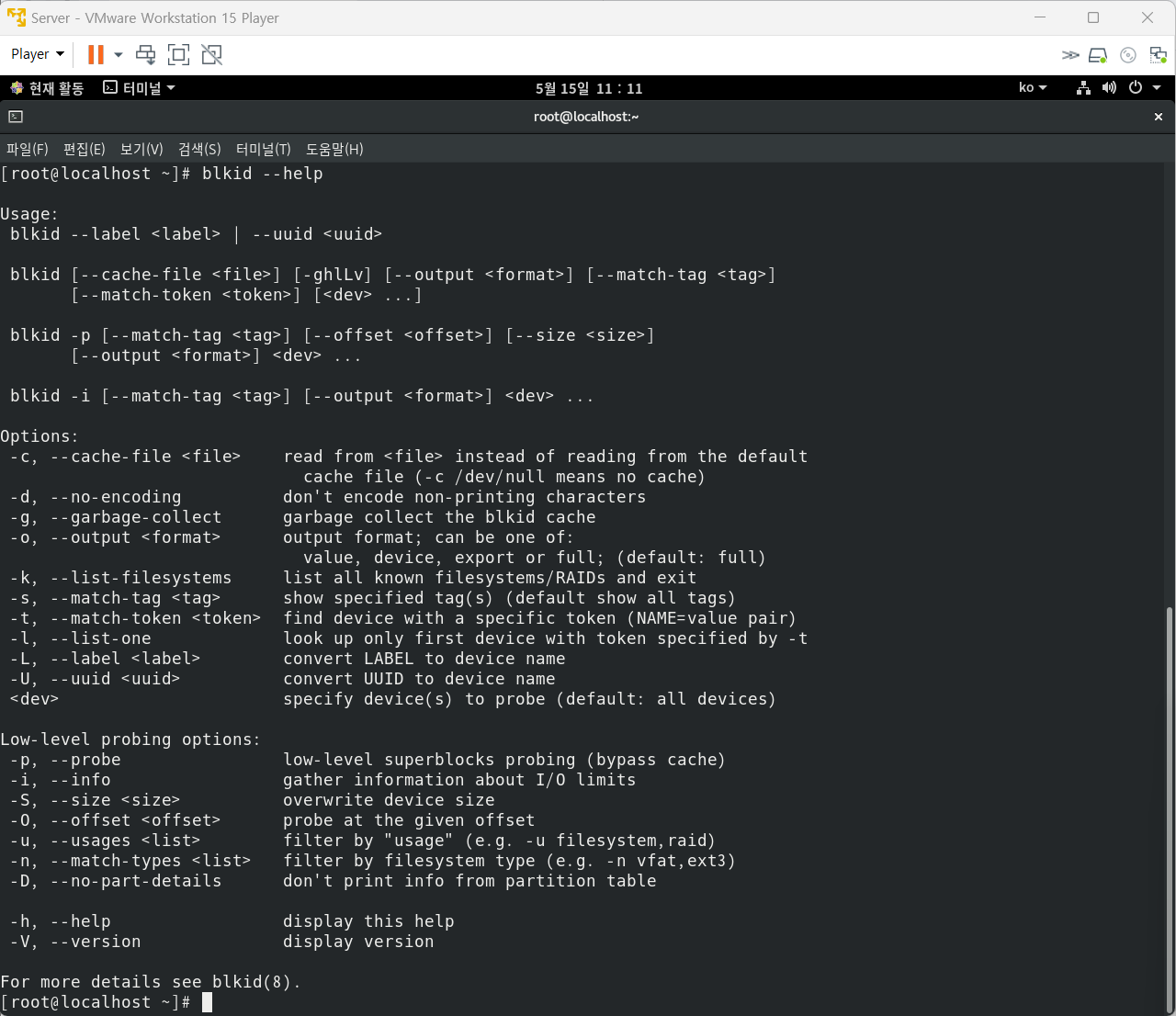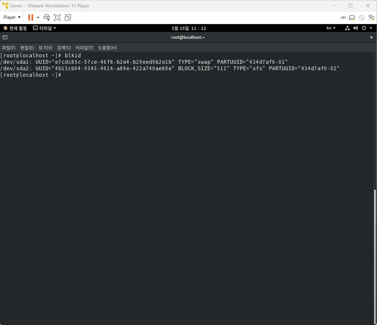blkid : 블록 디바이스의 속성과 UUID 등 정보를 출력해 주는 명령어