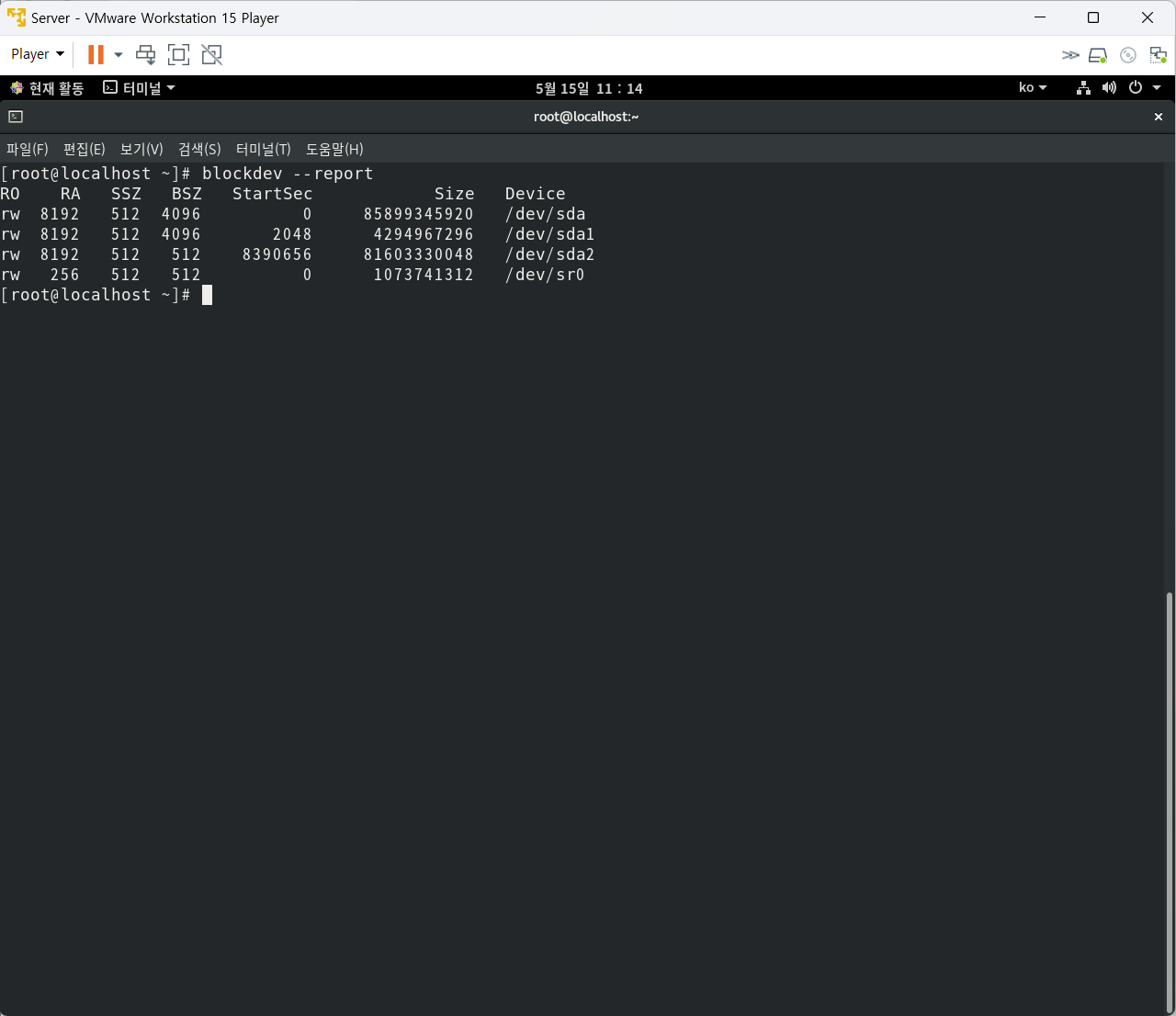 blockdev --report : 블록 장치의 ioctl 호출 후 출력