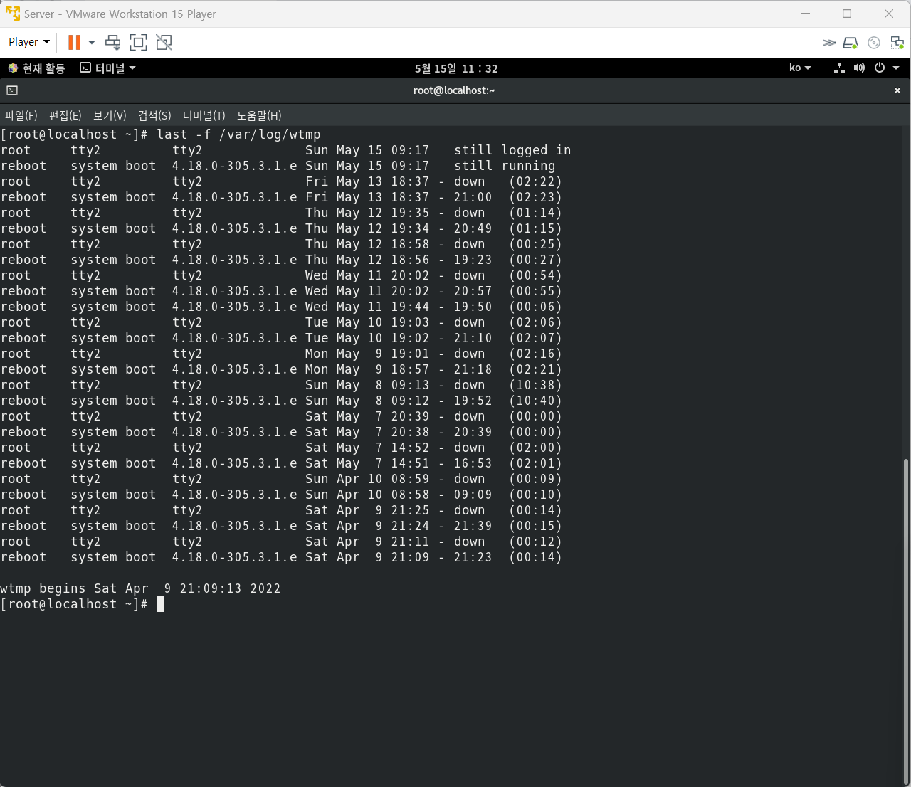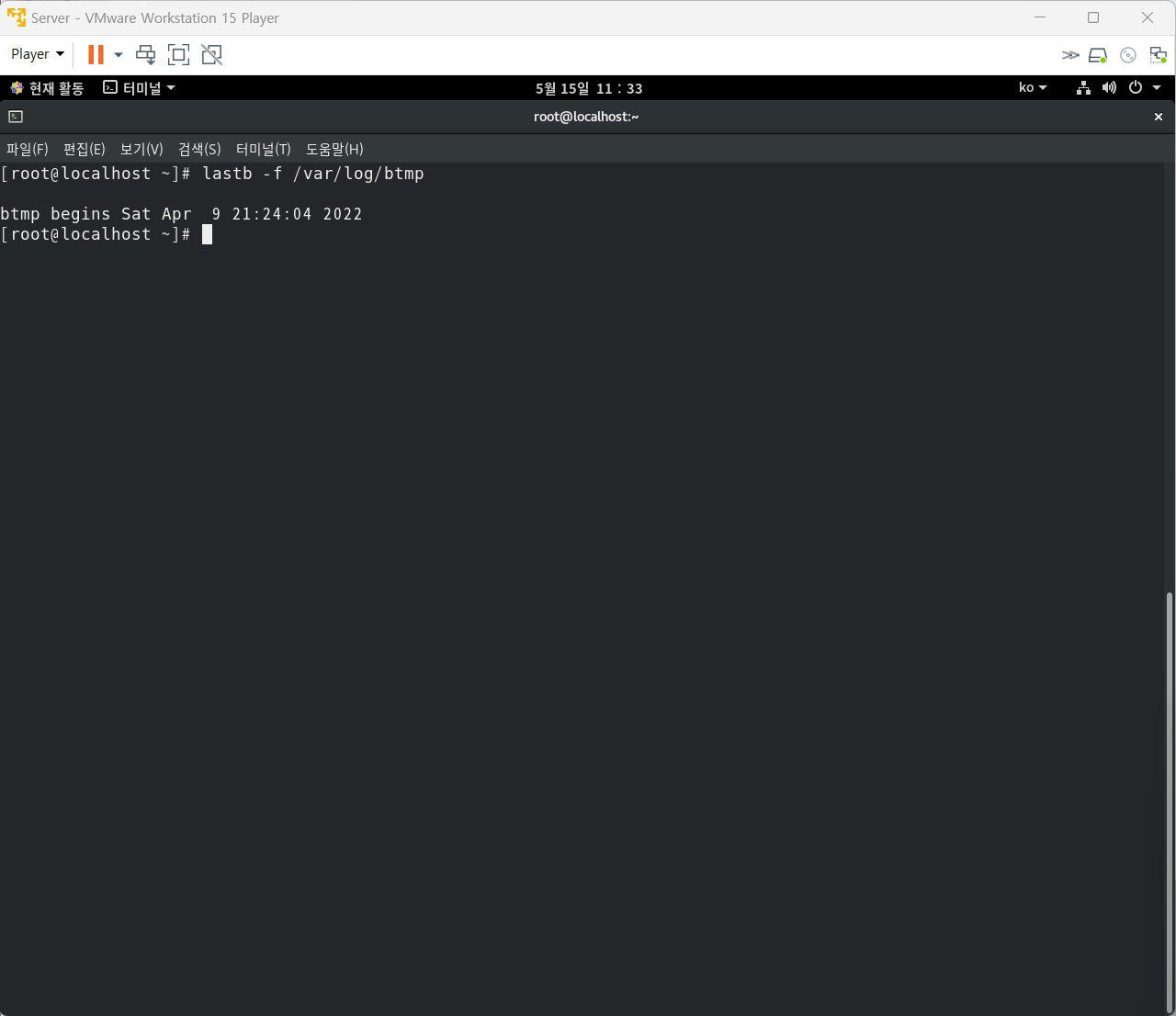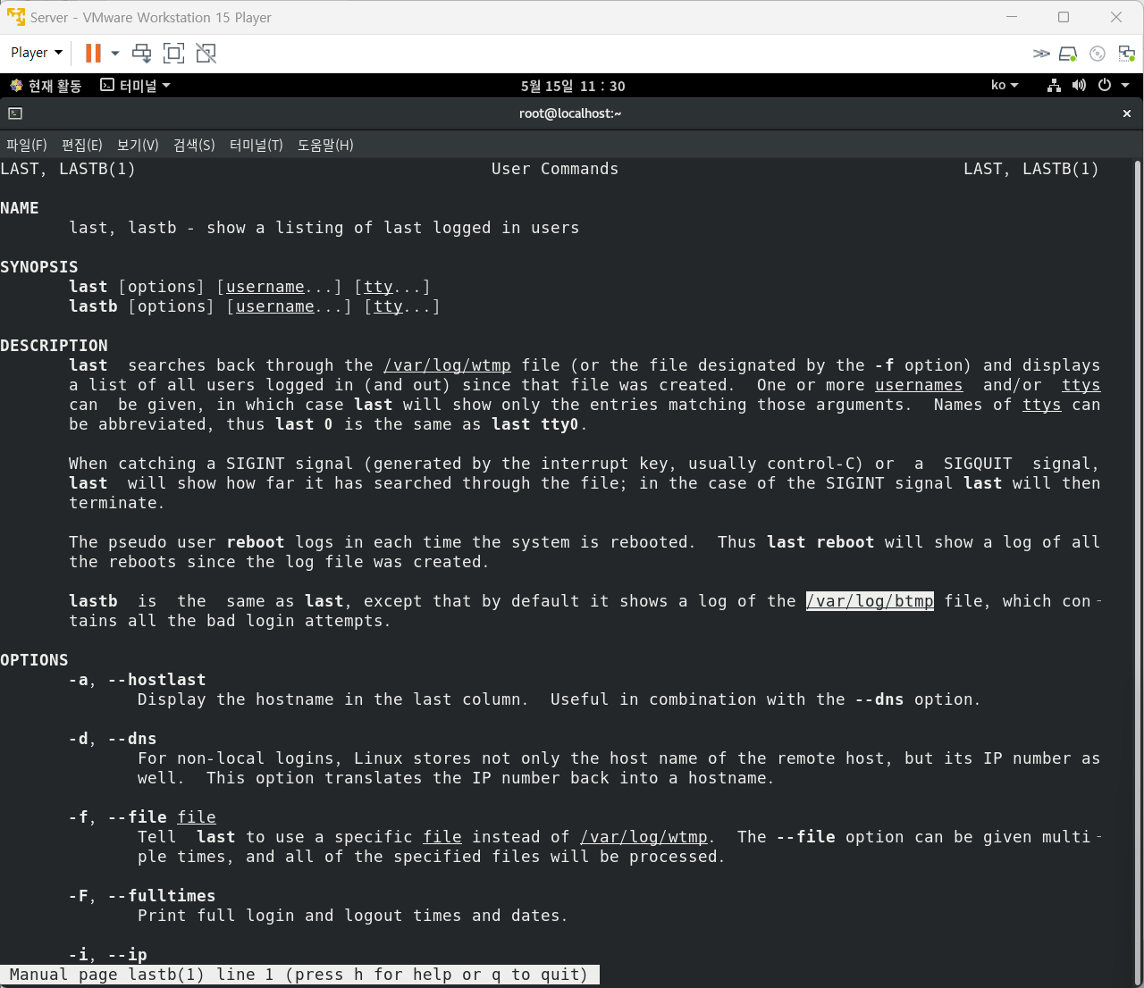 lastb : 로그인에 실패한 접속 기록