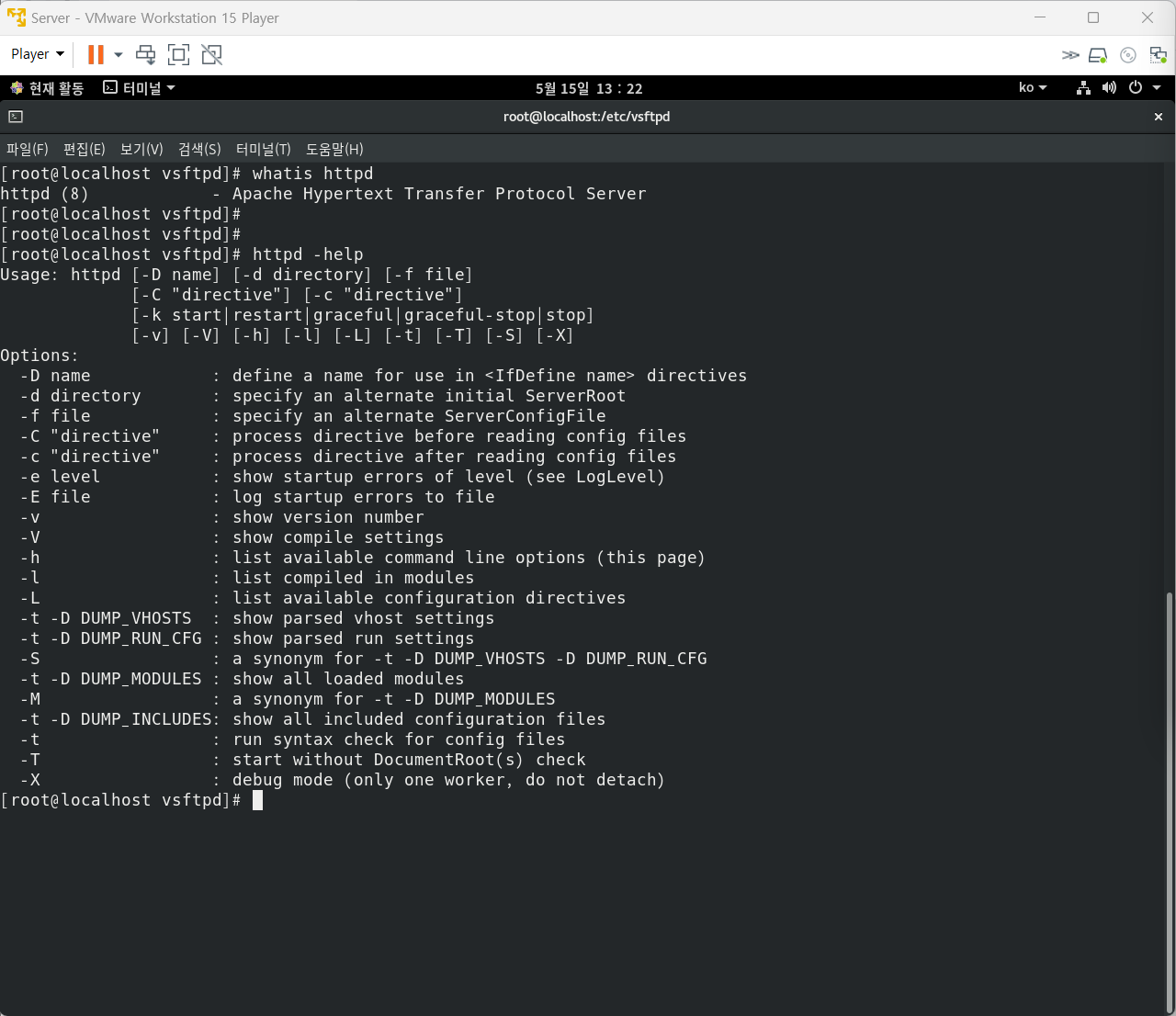 httpd : 아파치 데몬 실행 파일 / 웹 서버 제어, 관리하는 명령