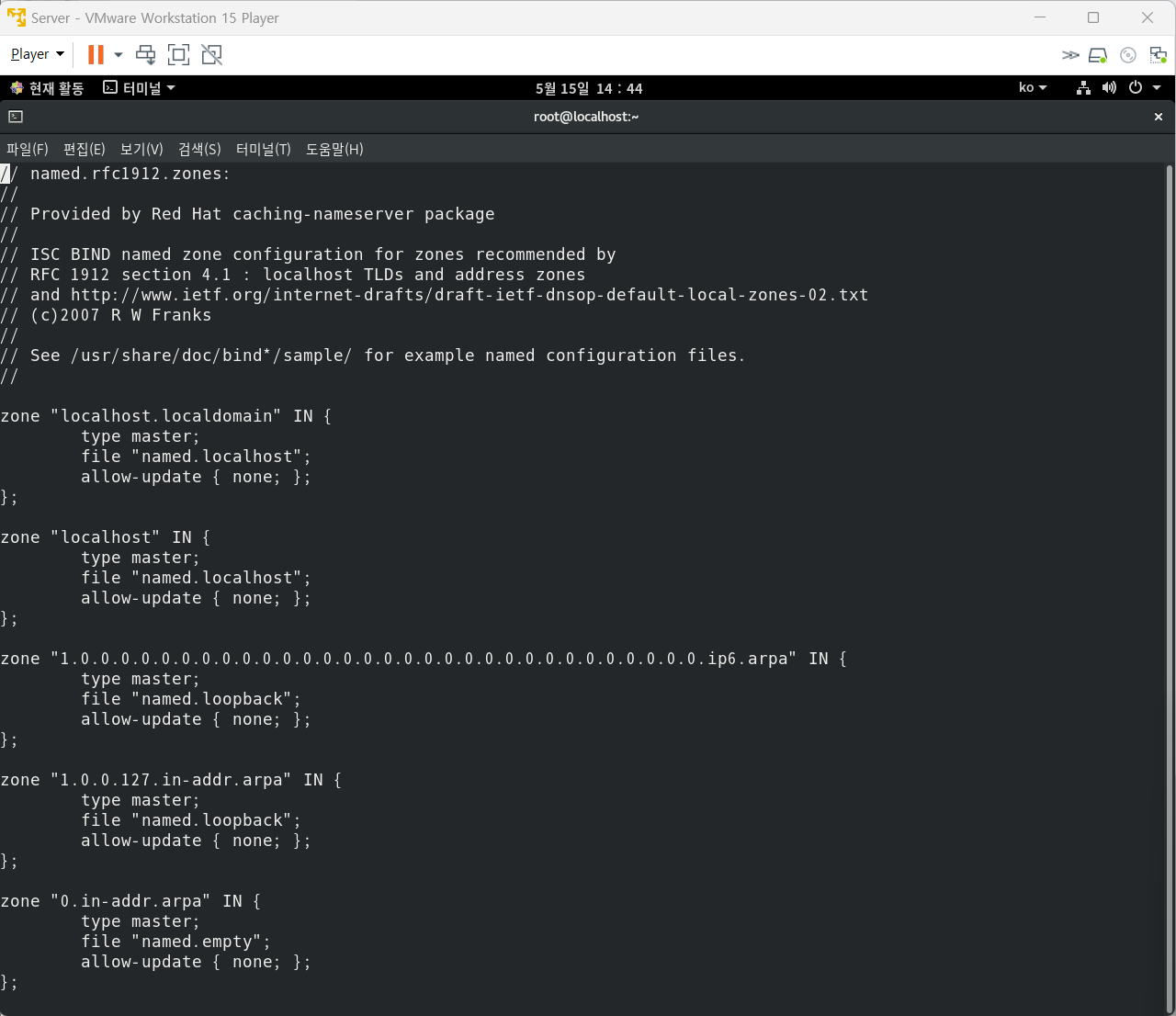 15. 다음은 DNS 서버의 zone 파일을 설정하는 과정이다. 조건에 맞게 ( 괄호 ) 안에 알맞은 내용을 적으시오.