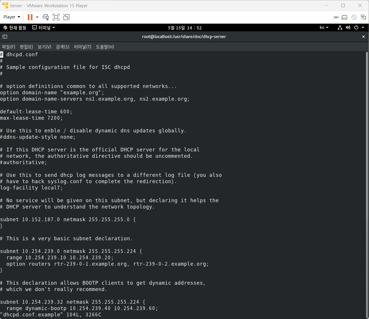 16. 다음은 DHCP 서버 운영을 위해 환경 설정 파일에 주요 설정을 진행하는 과정이다.