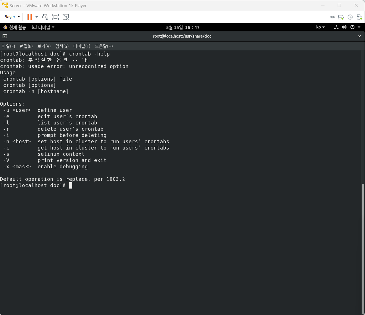 crontab : cron 작업 내용 확인 / 수정 / 삭제 명령어