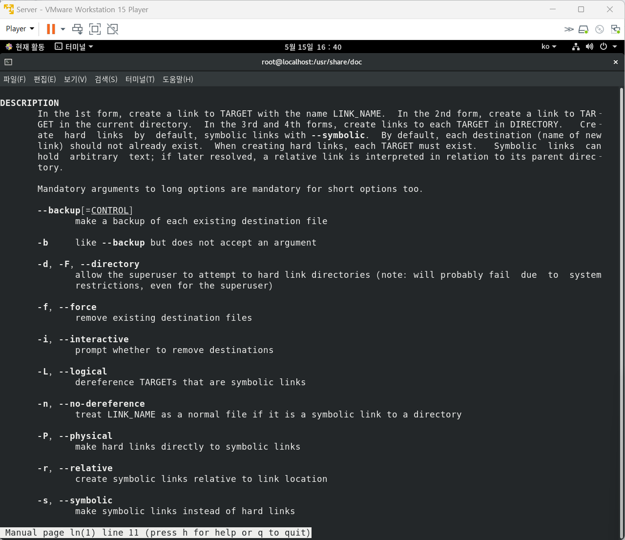 ln -s : 소프트 링크 파일 생성