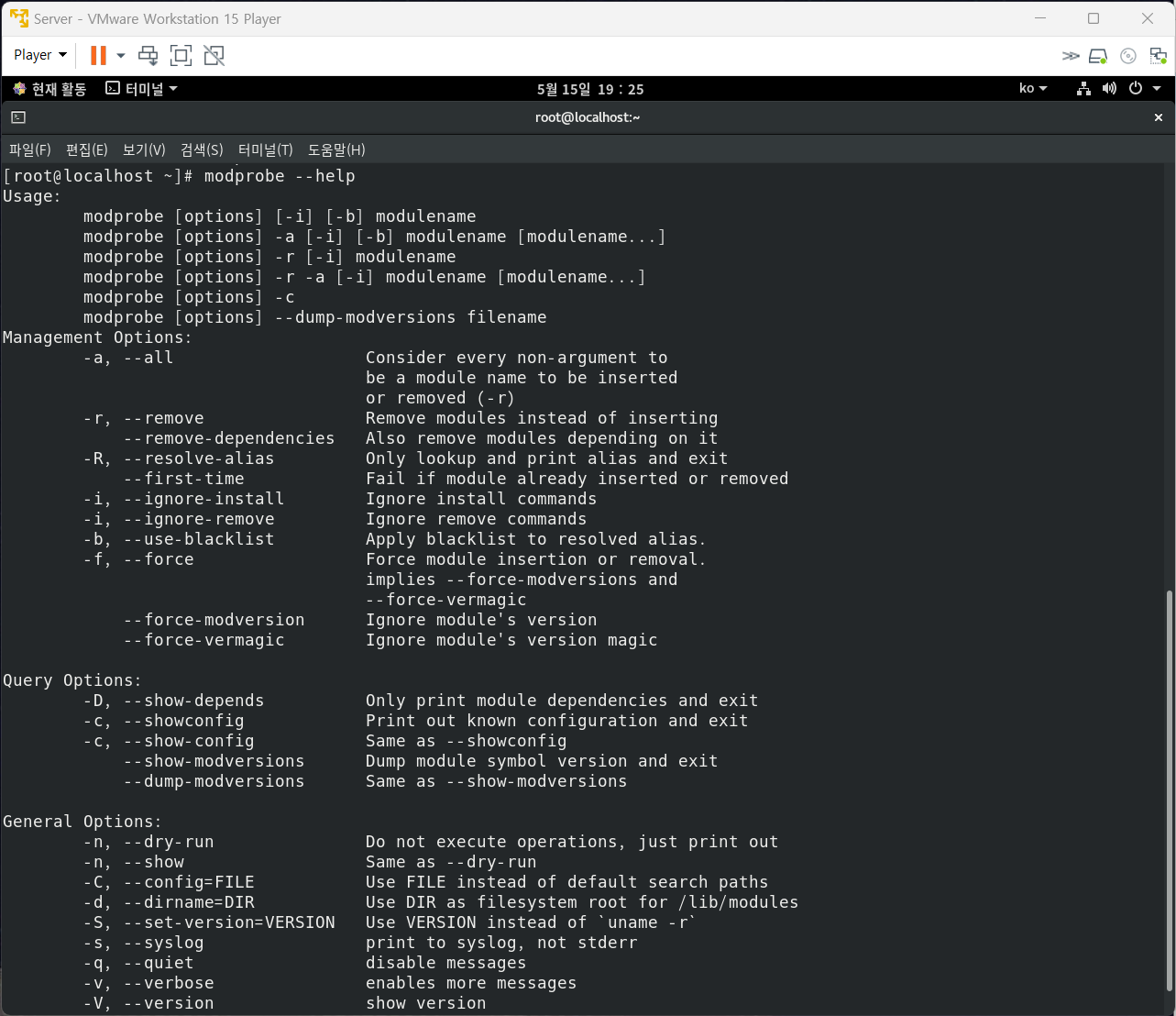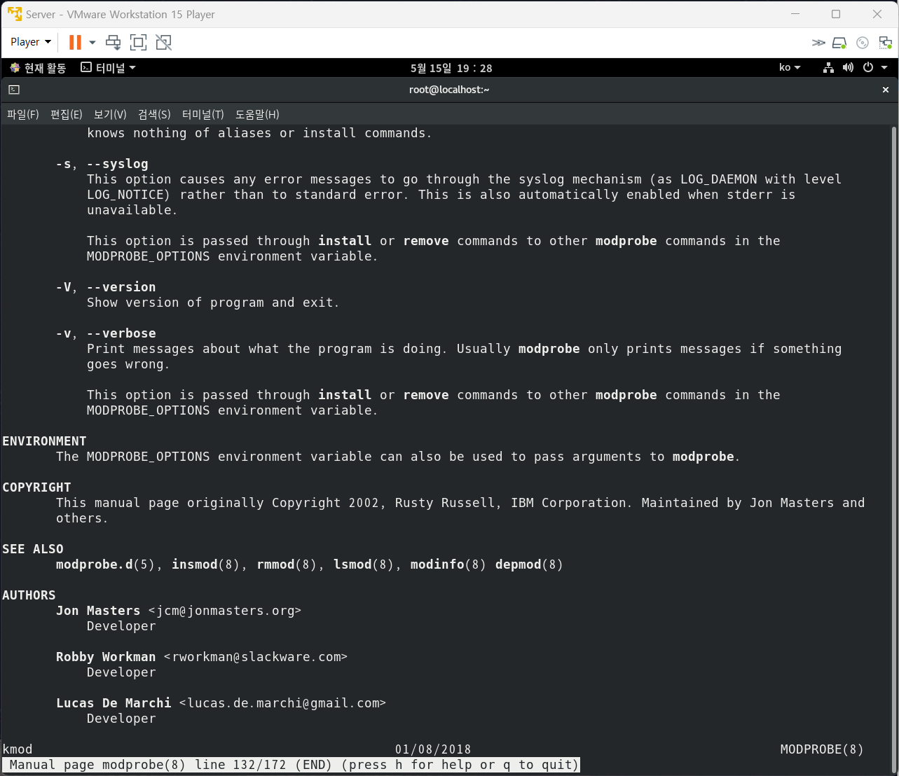 modprobe : 모듈을 설치 / 삭제하는 명령어