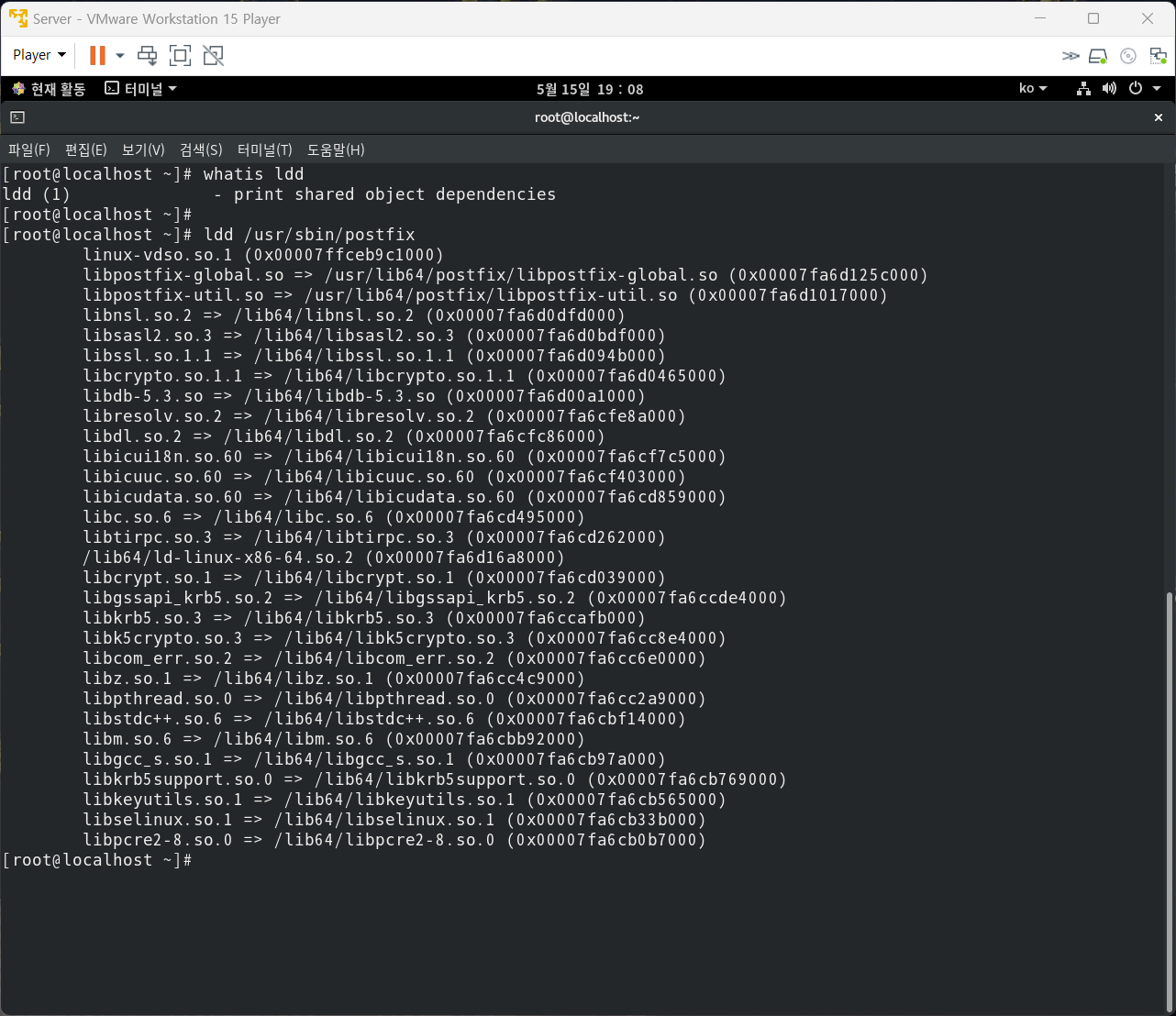 다. postfix가 참고하는 동적 라이브러리 정보를 확인하는 명령을 기재한다.
