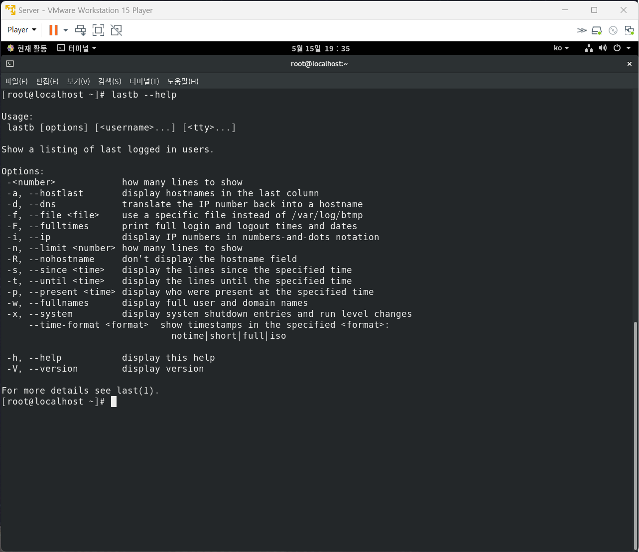 lastb : 로그인에 실패 기록(/var/log/btmp)