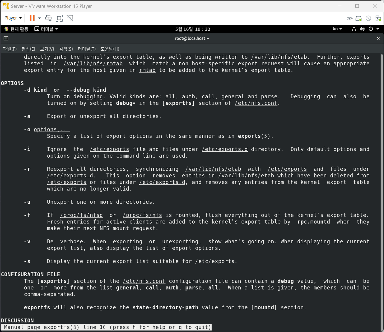 exportfs : 로컬의 디렉토리를 NFS 클라이언트로 export[1]하거나 unexport하는 명령어