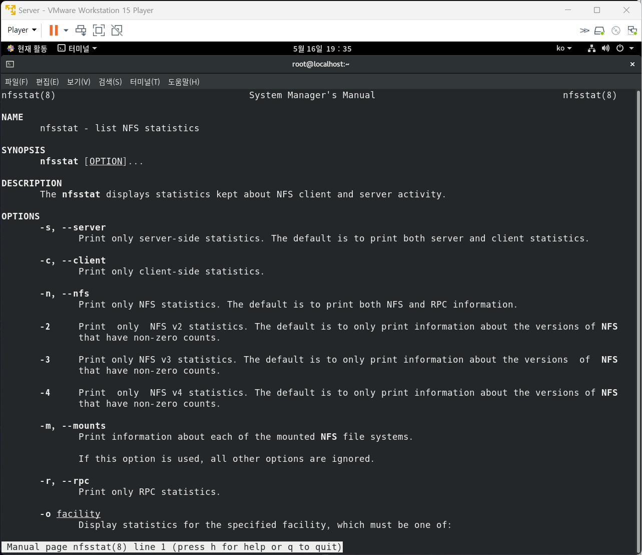 라. NFS 서버 또는 NFS 클라이언트에서 NFS 관련 상태 정보를 출력한다.