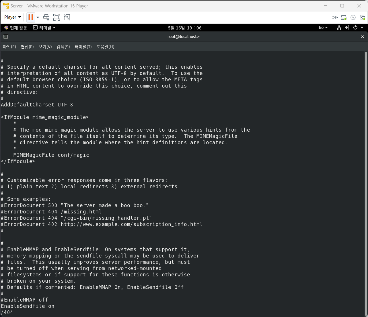 /etc/httpd/conf/httpd.conf : 아파치 웹 서버 환경설정 파일