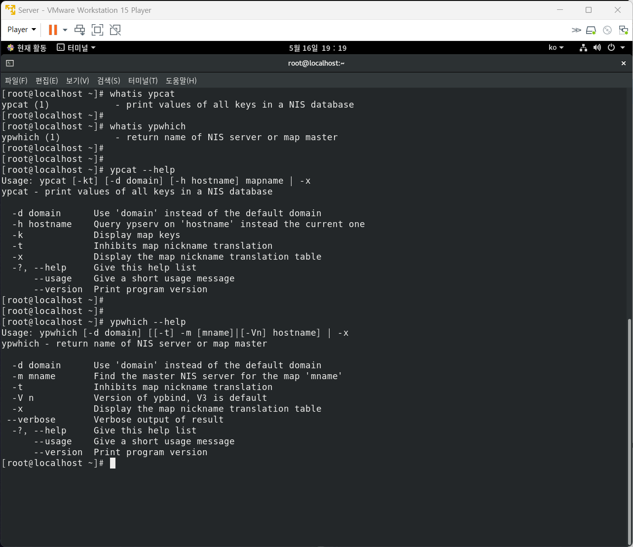 ypwhich : NIS 서버의 이름과 관련 맵파일을 출력