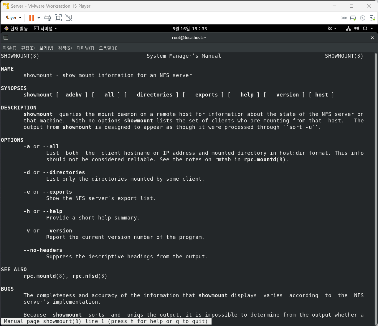 showmout : NFS 클라이언트에서 NFS 서버의 익스포트된 정보를 확인
