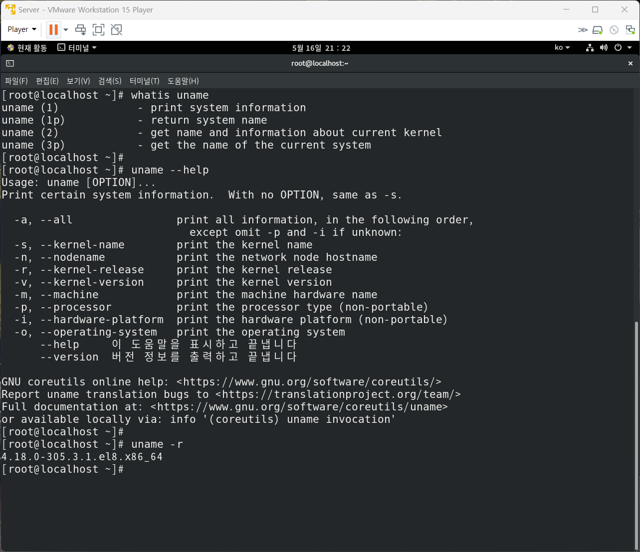 uname : 리눅스 시스템 정보 확인 명령어