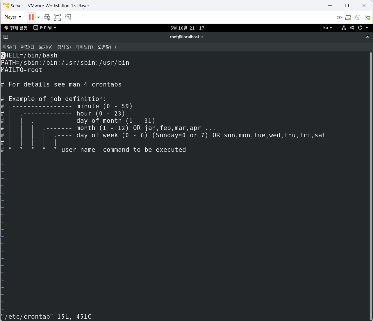 /etc/crontab : 총 7개 필드로 구성 됨