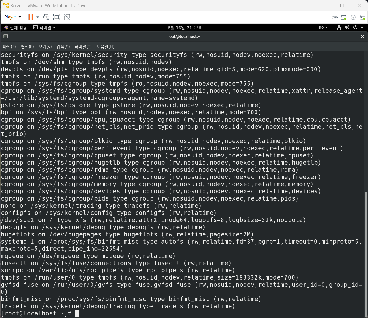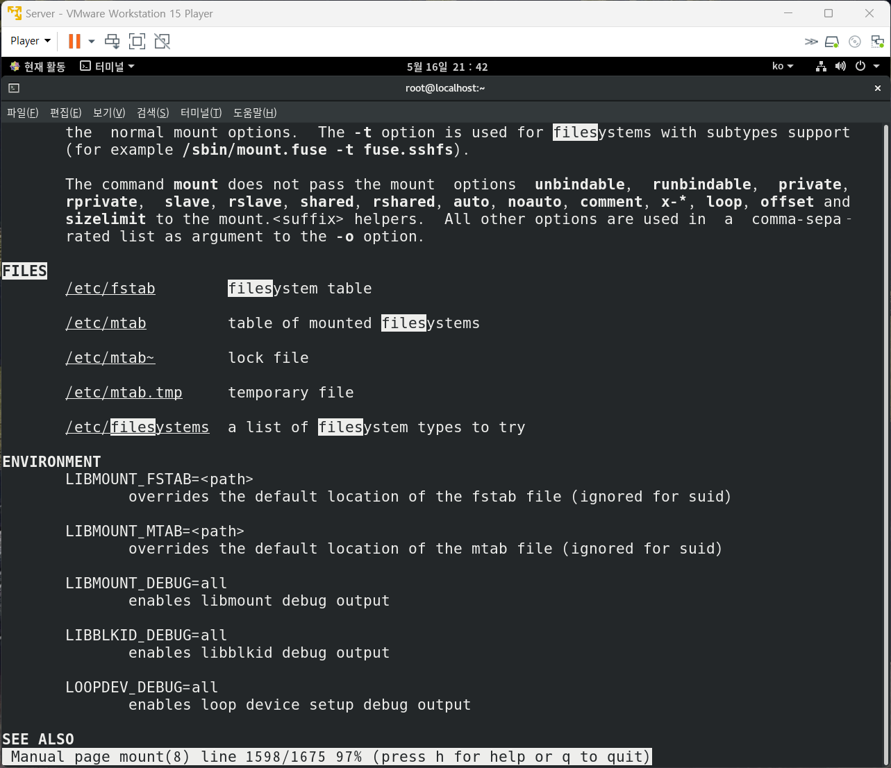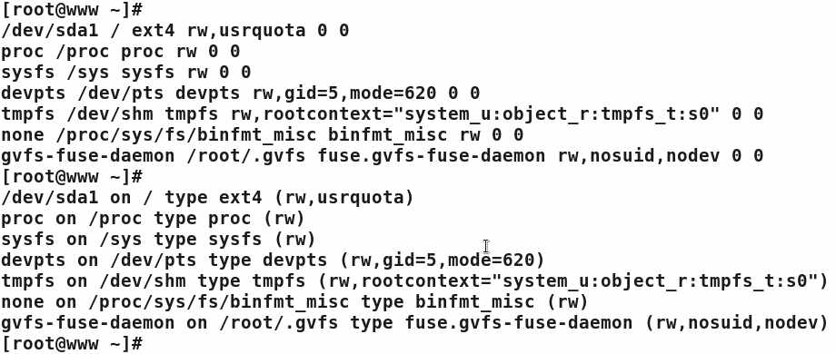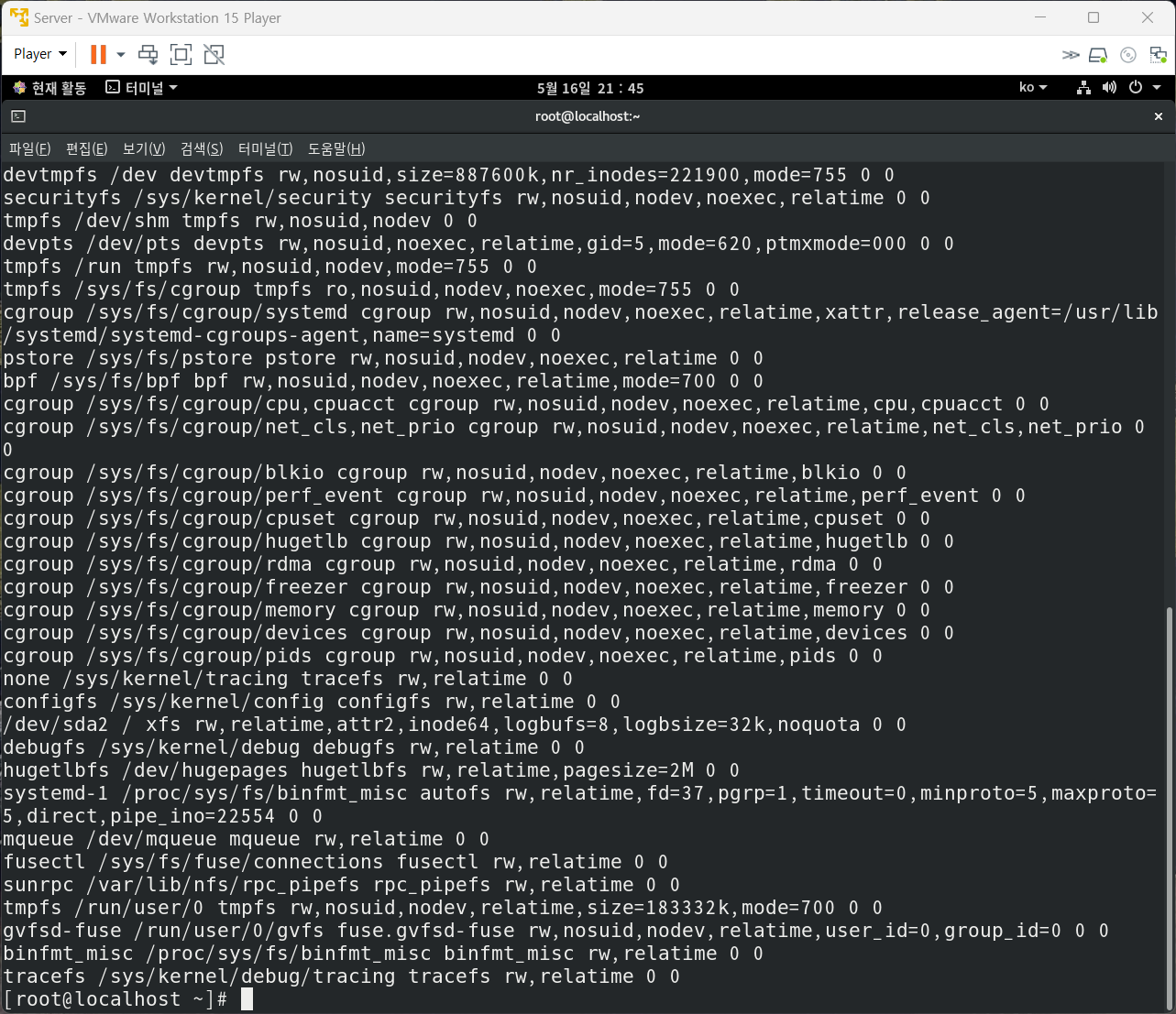 /etc/mtab : 현재 마운트 되어 있는 파일 시스템의 목록