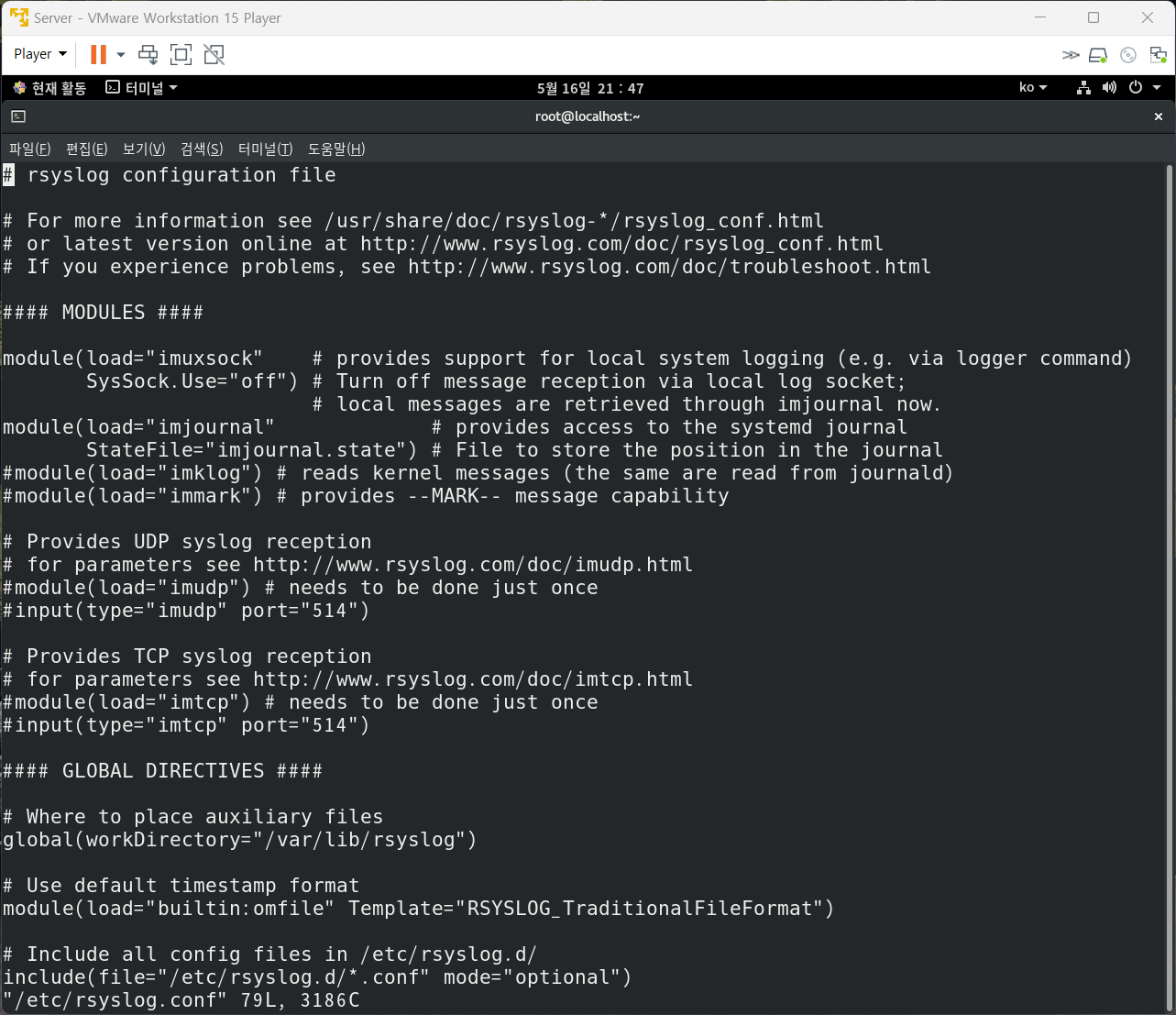 /etc/rsyslog.conf : 리눅스에서 각종 시스템로그를 관장하는 rsyslog의 설정파일