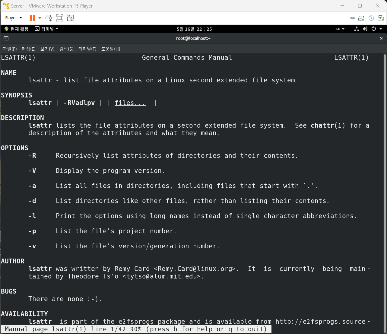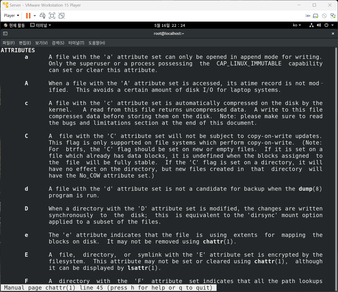 lsattr : 파일 속성 확인