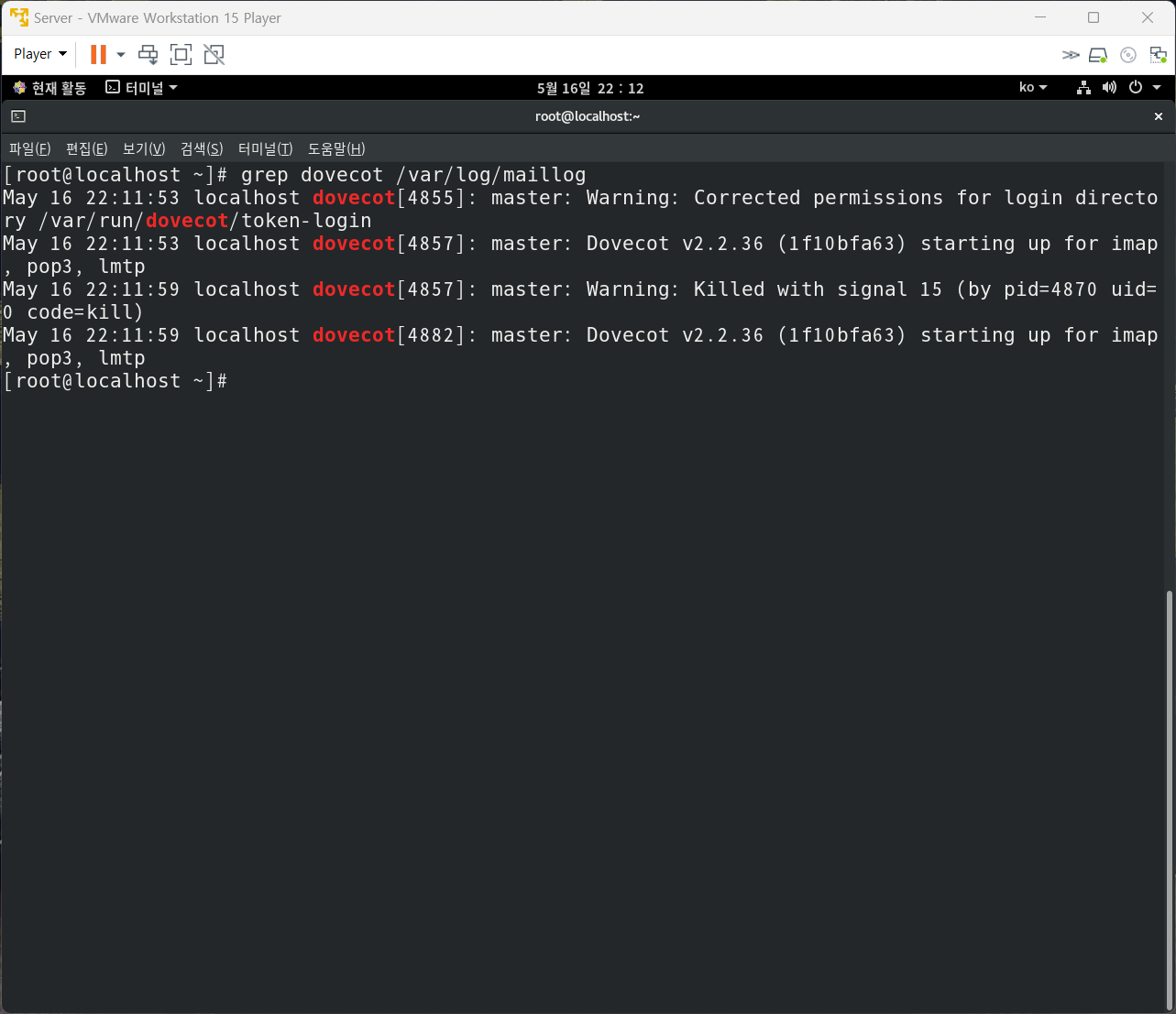 나. dovecot 데몬 시작 시간을 확인한다.