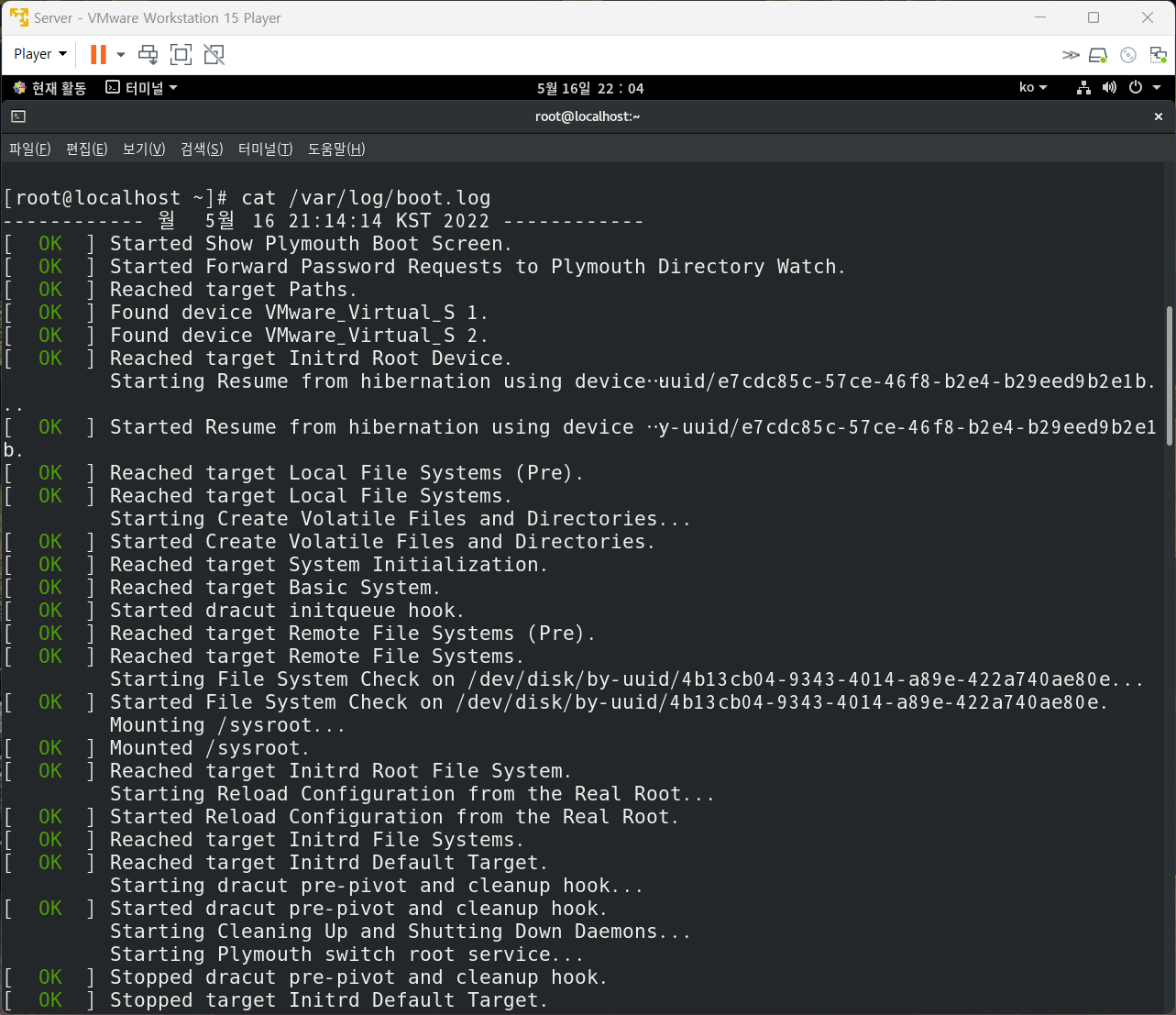 가. 부팅 시 동작하는 데몬 들의 동작 성공 여부를 확인한다.