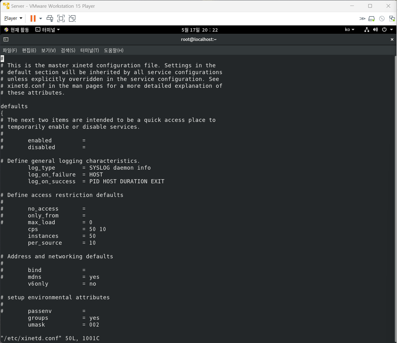/etc/xinetd.conf : 슈퍼 데몬 설정 파일