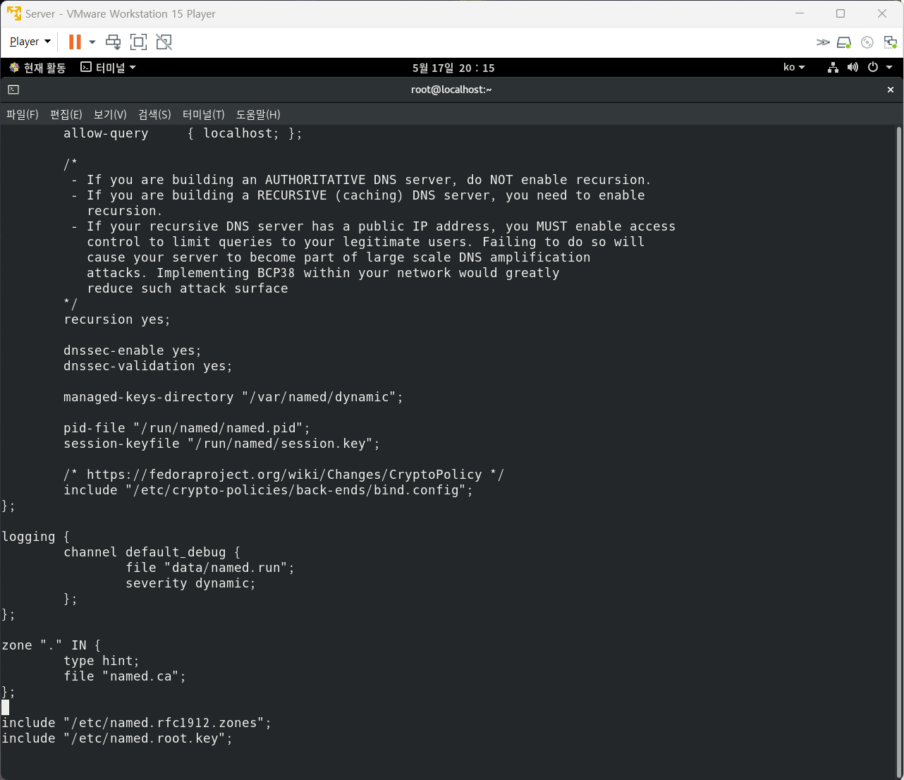 /etc/named.conf : DNS 서버 환경 설정 파일