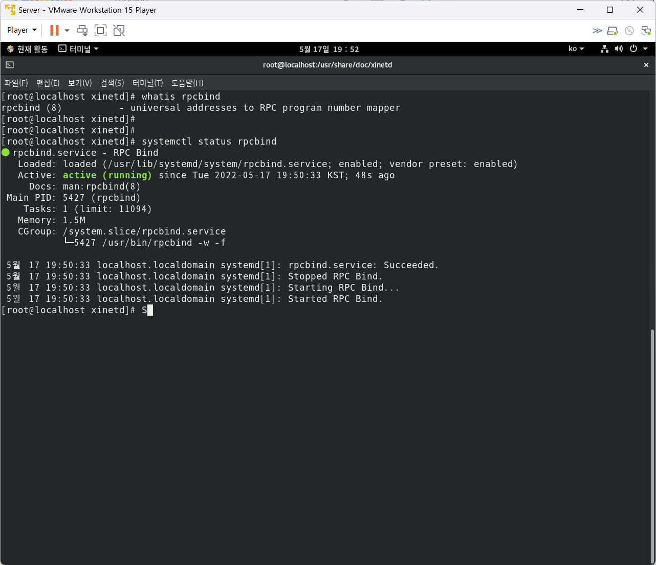 rpcbind : RPC 프로그램 번호를 포트 주소로 바꾸어 주는 서버 프로그램