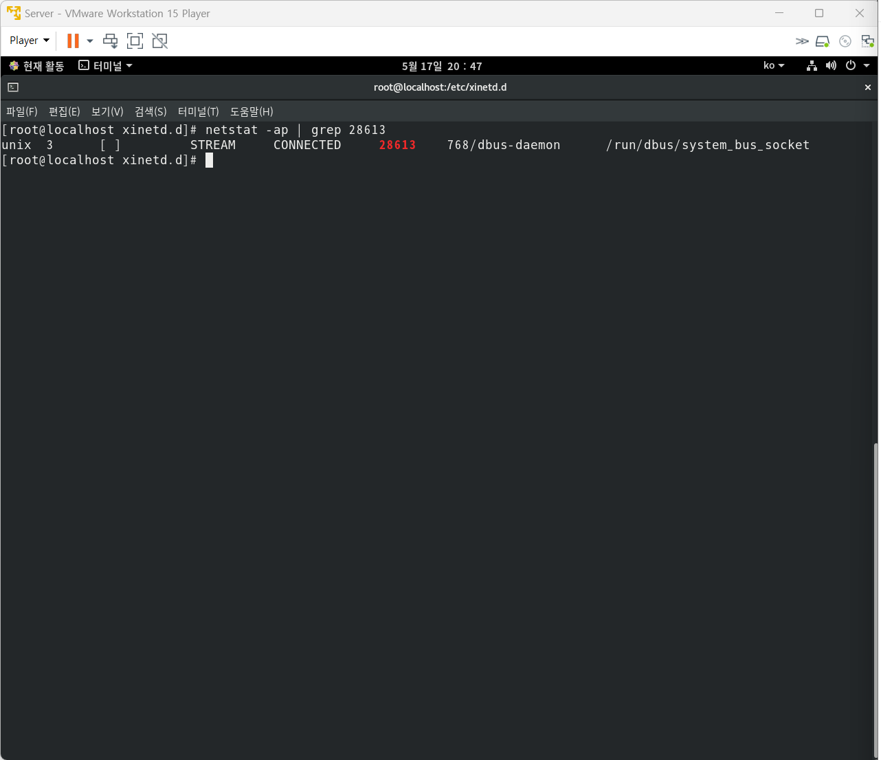 14. 다음은 로컬 시스템에 열려진 포트를 확인하고, 실행 명령어를 찾는 과정이다.