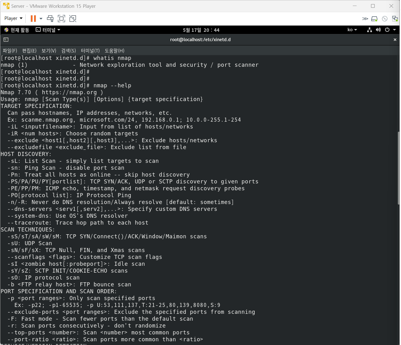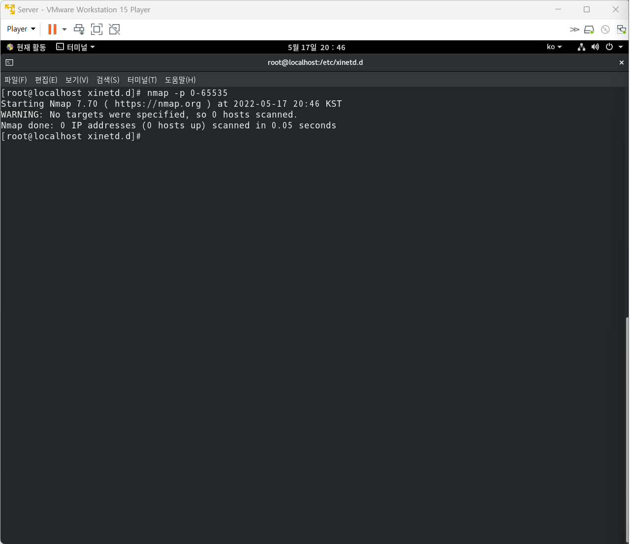 나. ‘가’항의 명령 실행 시 ‘55176/tcp open unknown'이라는 결과를 확인하였다.