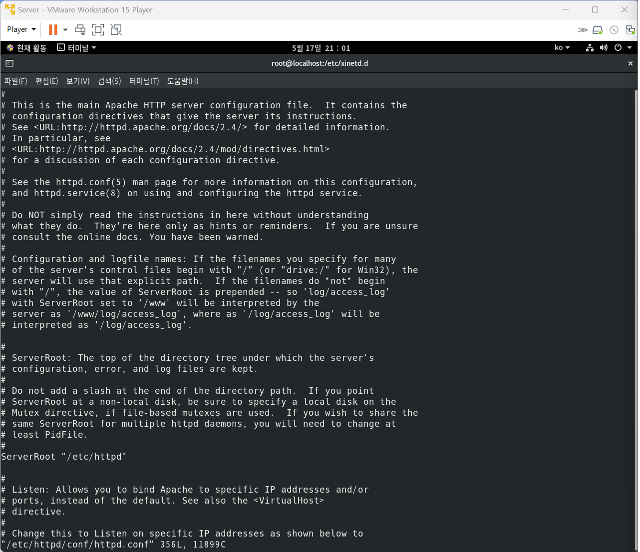 /etc/httpd/conf/httpd.conf : 아파치 웹 서버 환경 설정 파일