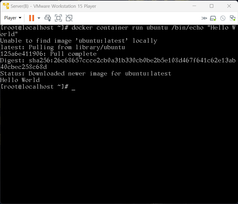2. 로컬 저장소에 ubuntu:astest 이미지가 존재하기 때문에 바로 실행됨