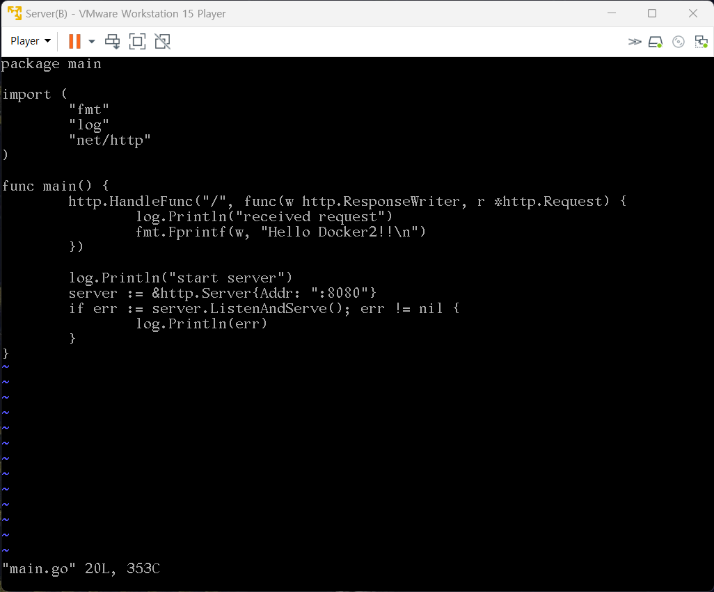 fmt.Fprintf(w, "Hello Docker2!!\n")