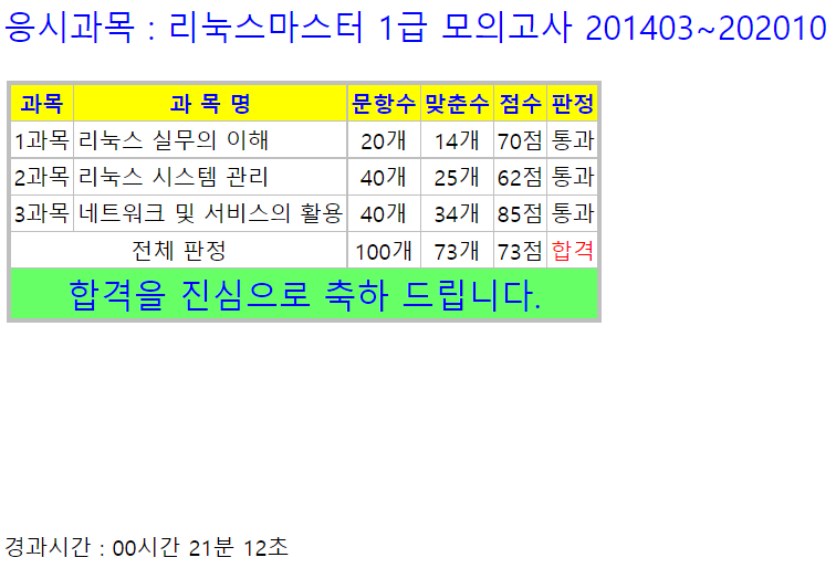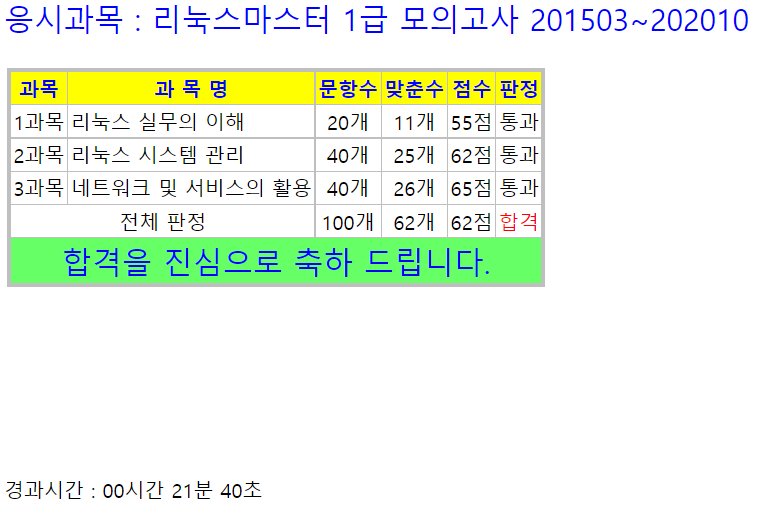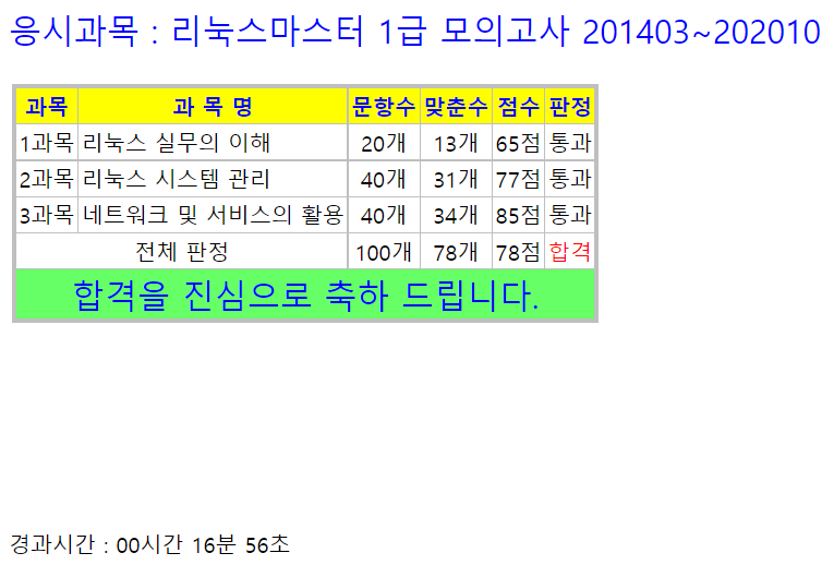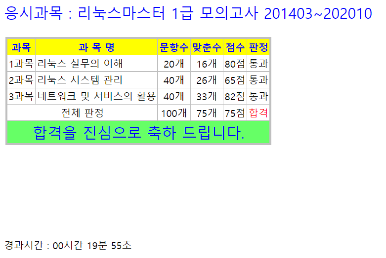 리눅스마스터 1급은 국내 리눅스 자격증에 마지막판으로 합격률은 25%정도 나오고 있다.