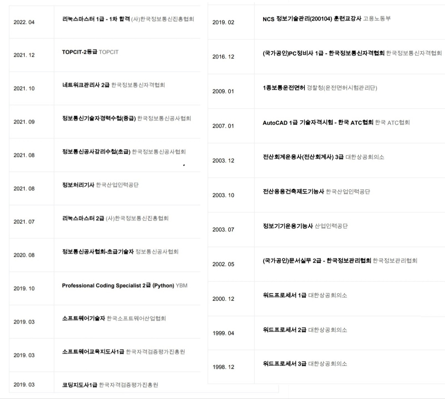 < 취득 면허 / 자격증 >