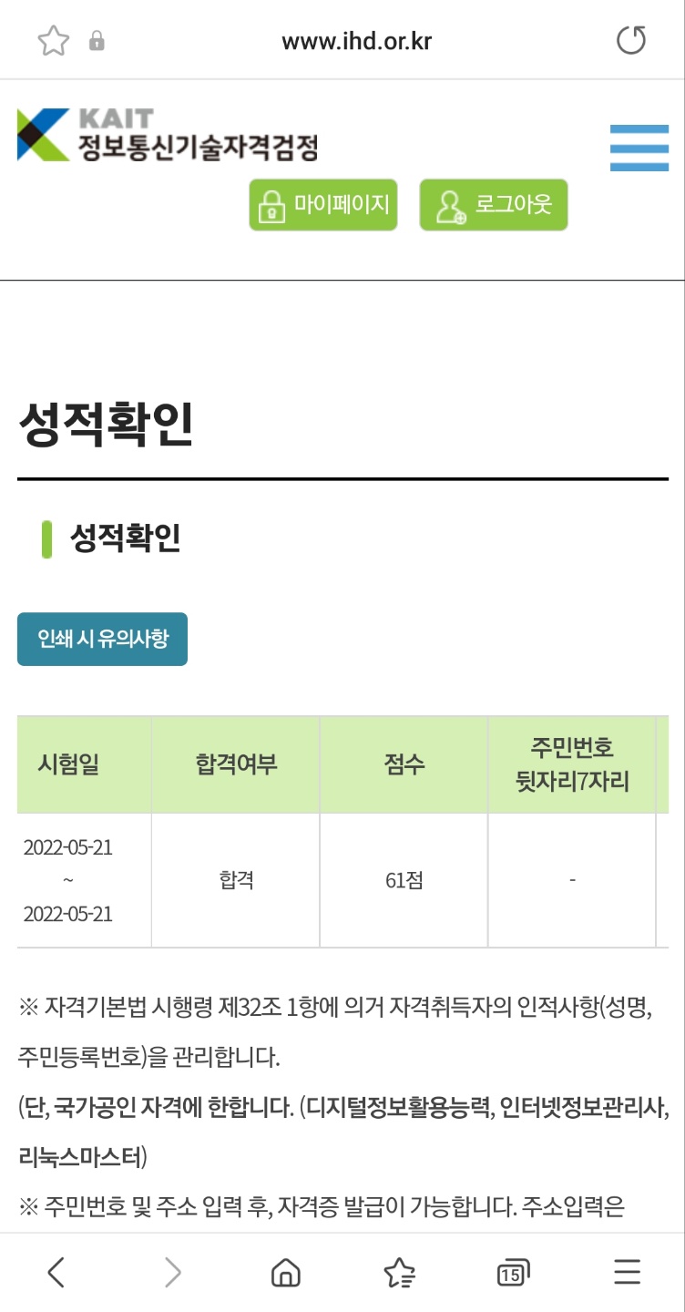 그렇게 시험을 보고 나와서 합격자 발표일