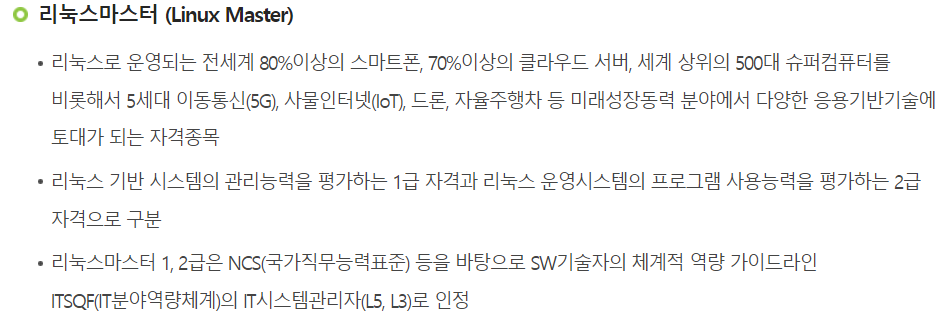 즉 리눅스마스터 1급은 IT 기사급 자격증이라고 볼수 있다.