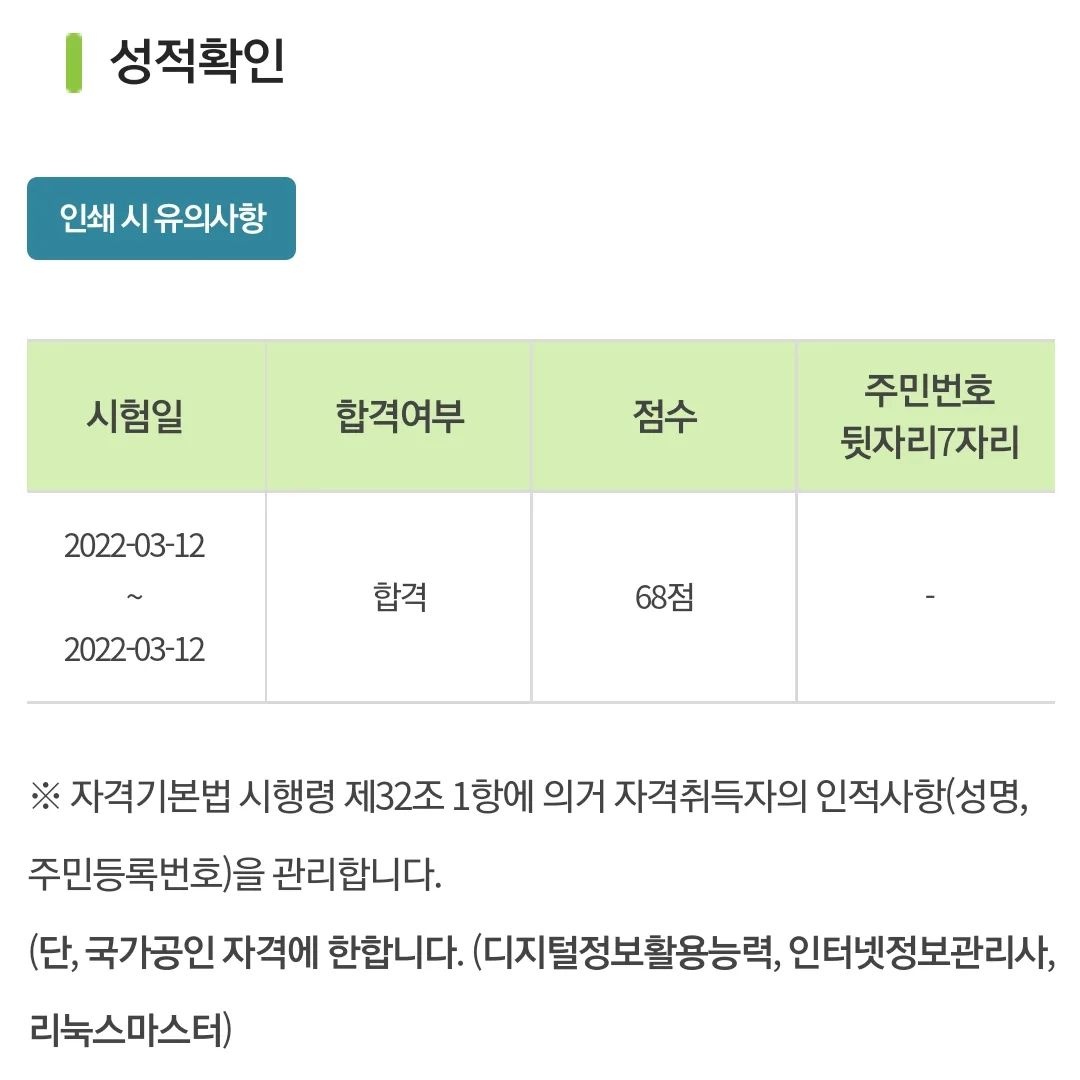 대망의 21번째 자격증인 리눅스 마스터 1급이 취득 완료 되었다.