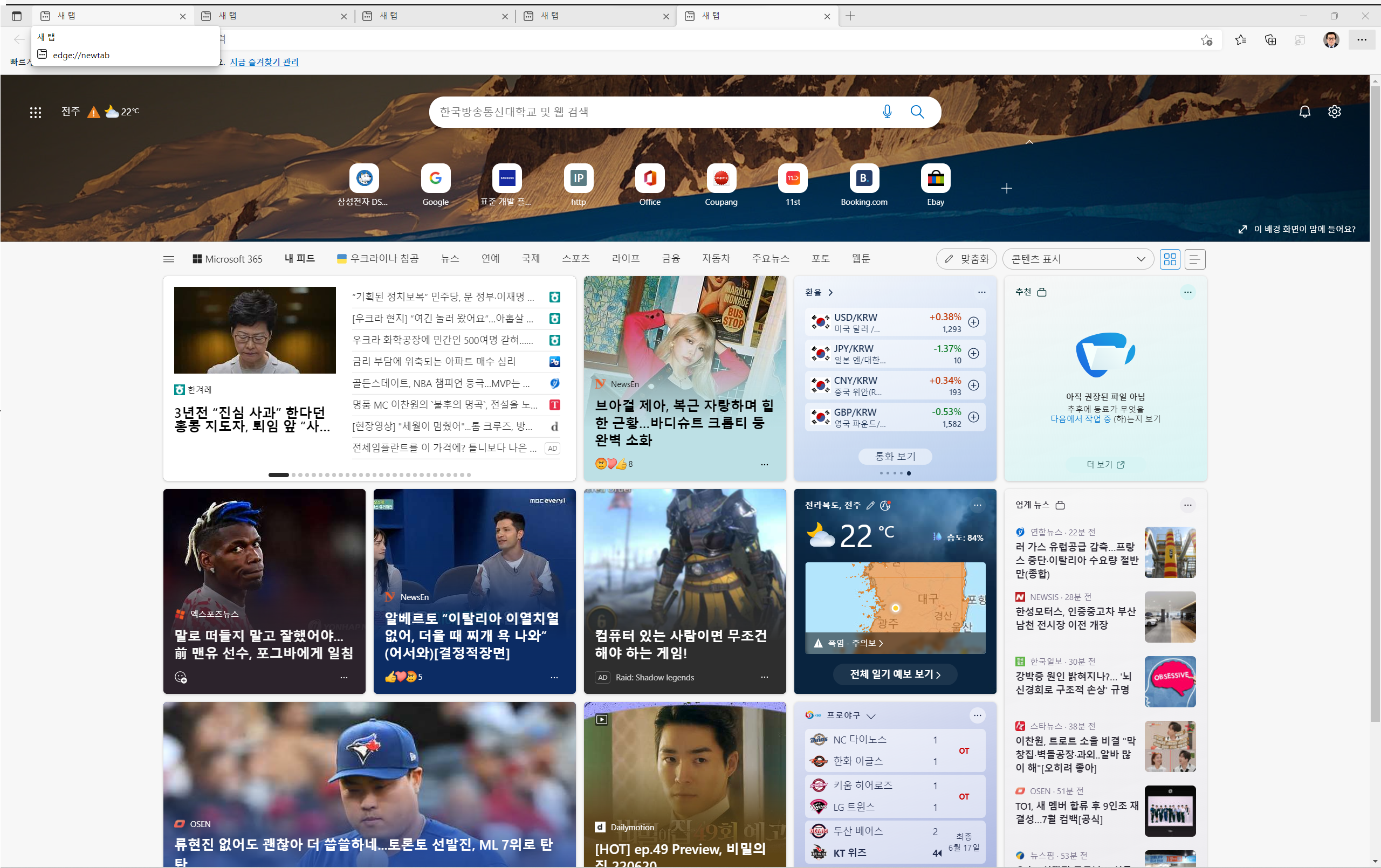 EDGE에서 여러 탭을 띄우고 새 탭 부분에 마우스를 올리면 저렇게 아무런것도 안뜨는것을 바꾸면