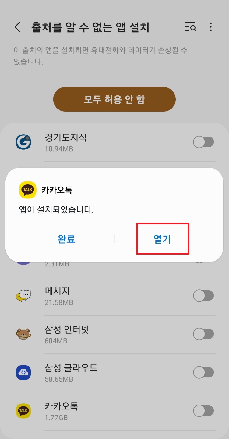 7. 내 파일 > KaKaoTalk-9.8.6-202206300627.apk 설치